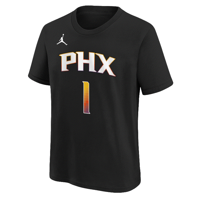 Заказать поиск футболки Nike Devin Booker Phoenix Suns 2024 Youth Statement Edition NBA T-Shirt с бесплатной доставкой.