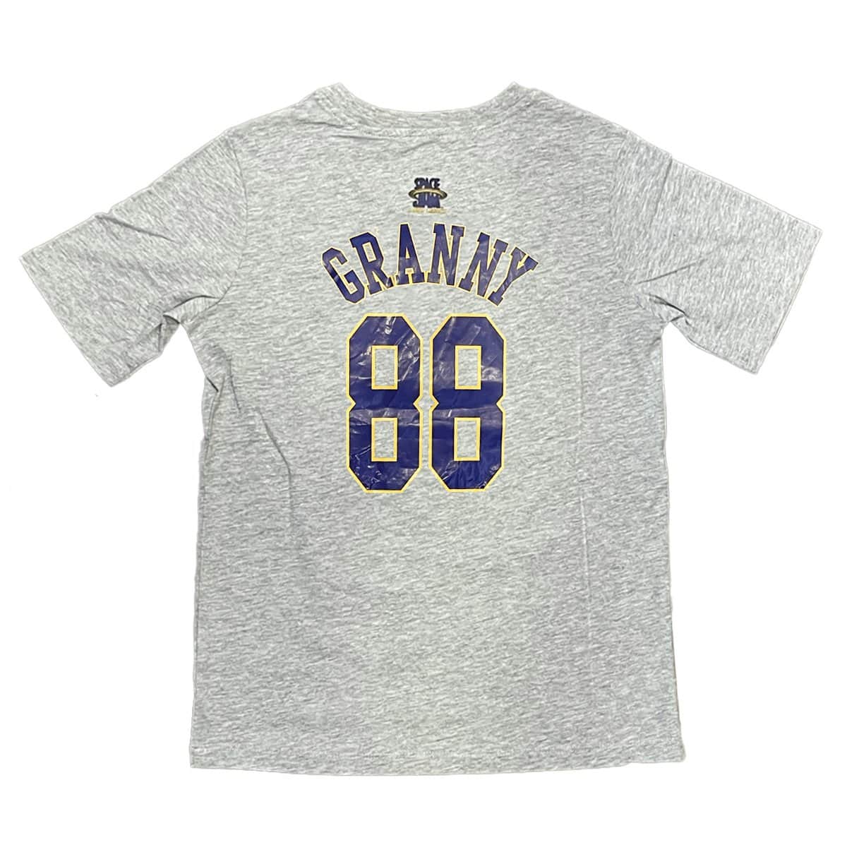 Футболка Outerstuff Granny Tune Squad Space Jam 2 Name & Number Youth T-Shirt выполнена из высококачественного материала в сером цвете. Классическая одежда для молодежи и детей полностью преображается с принтом на баскетбольную тему. Футболка с классическим кроем, круглым вырезом, с превосходной формой и непревзойденным ощущением. На футболке присутствует принт имени и номера персонажа  “Granny 88”. Успевайте приобрести, пока есть в наличии.