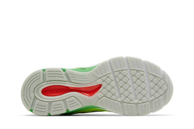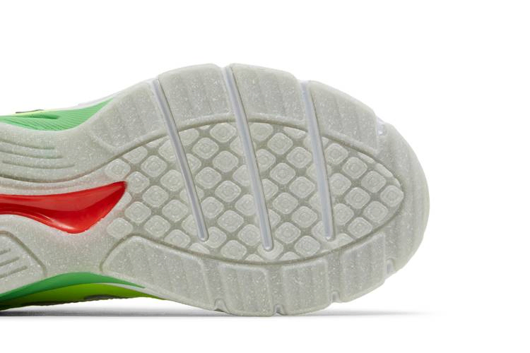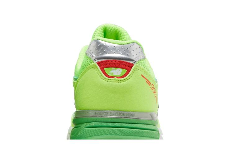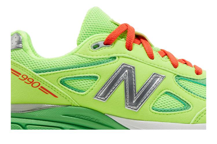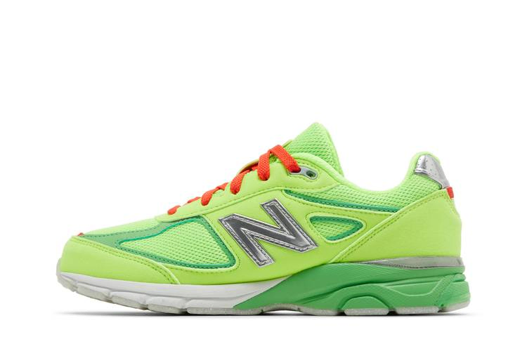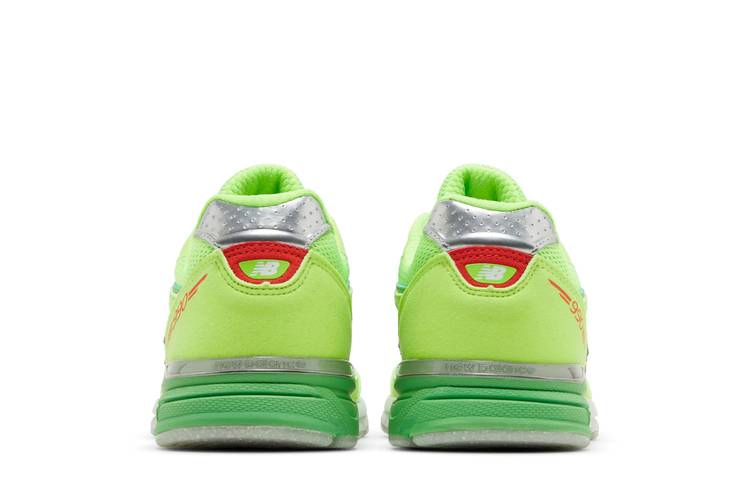 DTLR x New Balance 990v4 Big Kid "Festive" демонстрирует красные шнурки на фоне неоново-зеленого верха, выполненного из дышащей сетки и замши. Металлические серебряные акценты сияют на логотипе 'N' и заднике. Внутри кроссовка, на носочной части, красуется брендинг New Balance со снежинками и графикой рождественской елки. Кроссовки расположены на двухцветной межподошве ENCAP с легкой амортизацией из пеноматериала и прочным полиуретановым ободом.
