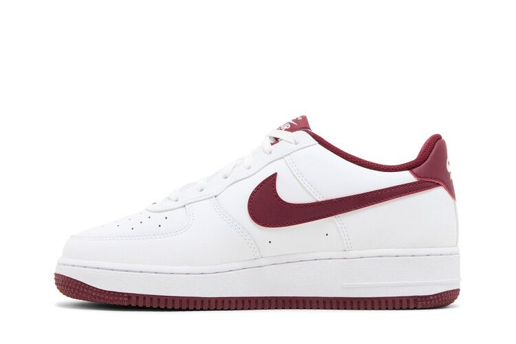 Созданные для больших детей, кроссовки Nike Air Force 1 GS "White Team Red" имеют строгий белый кожаный верх, подчеркнутый темно-малиновыми акцентами на фирменном логотипе Swoosh, тканом язычке Nike, подкладке воротника и заднике с логотипом Nike. В основе кроссовок лежит традиционная резиновая подошва с прошитыми боковыми стенками и встроенным блоком Air в пятке.