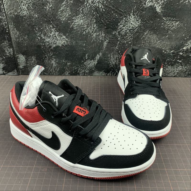 Заказать поиск кроссовок Air Jordan 1 Low GS Black Toe с бесплатной доставкой. Air Jordan 1 Low GS Black Toe демонстрируют классическую гамму цвета. Верх исполнен в белой кожаной основе с контрастными черными и красными накладками. Модель имеет черный Nike Swoosh, белый символ Jumpman на черном нейлоновом язычке и логотип Jordan Wings на пяточной части. Белая мидсоль с технологией Air и контрастная красная подошва завершает дизайн. Ознакомьтесь с подробными фотографиями и закажите эту расцветку Air Jordan 1 Low GS Black Toe в розничных магазинах или в сервисе Slamdunk
