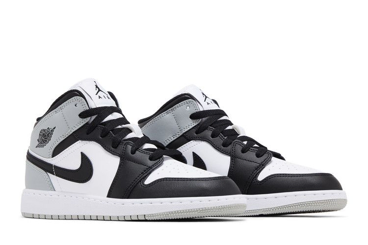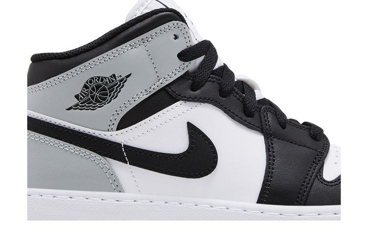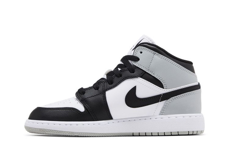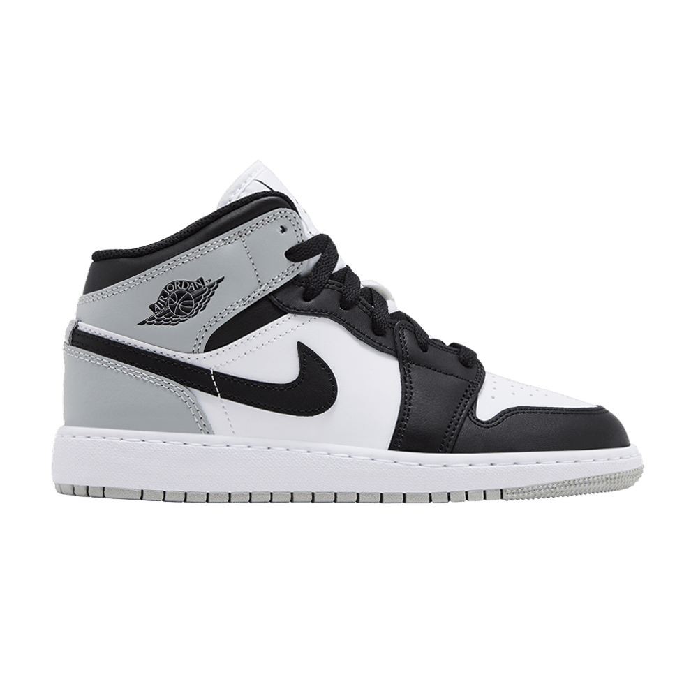 Созданные для больших детей, Air Jordan 1 Mid GS 'Barons' демонстрируют верх из гладкой кожи, сочетающий в себе строгий белый цвет с контрастными черными акцентами на накладке передней части стопы, глазках, воротнике и Swoosh. Пятка и воротник выполнены в волчьем сером цвете, а на боковой стороне красуется логотип Wings. Нейлоновый язычок украшает тканая бирка Jumpman.