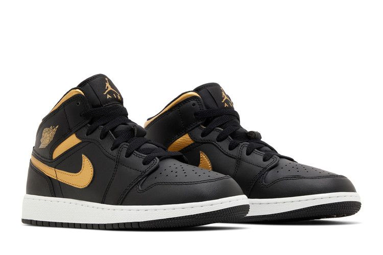 - Кроссовки Air Jordan 1 Mid GS 'Black Metallic Gold'