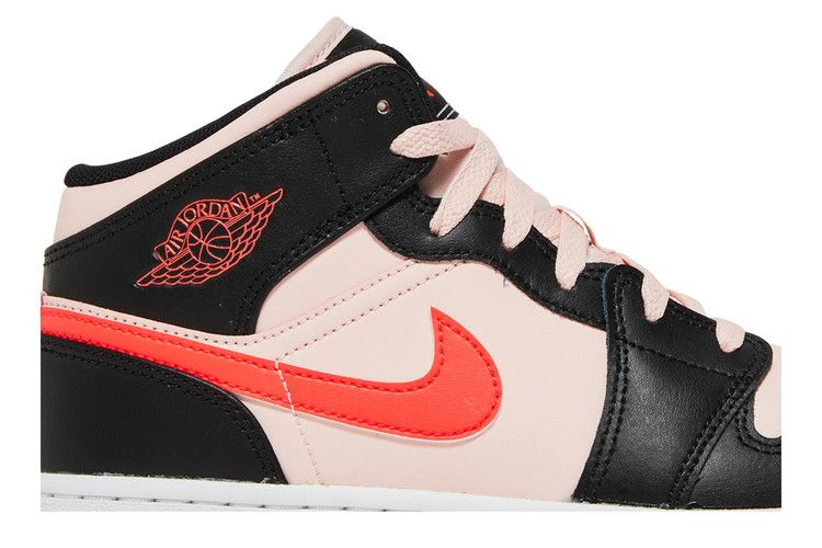 Модель Air Jordan 1 Mid GS "Black Pink Crimson", предлагаемая в больших детских размерах, привносит обновленную цветовую палитру в обувь, созданную по образцу оригинала 1985 года. Верхняя часть кроссовок выполнена из натуральной кожи, розовая основа сочетается с контрастными черными накладками на носочной и пяточной частях. Фирменный логотип Swoosh выполнен в инфракрасном цвете и сочетается с логотипом Wings на боковом воротнике и значком Jumpman на тканом язычке. Кроссовки имеют традиционную резиновую подошву, дополненную подошвой Air-sole, заключенной в легкую танкетку из пеноматериала.