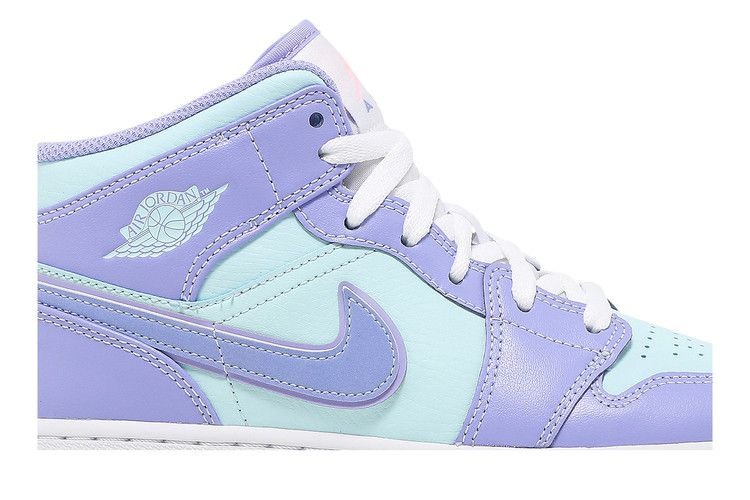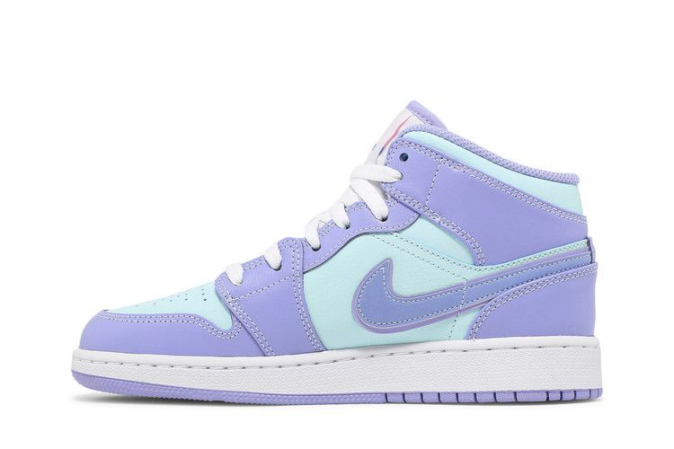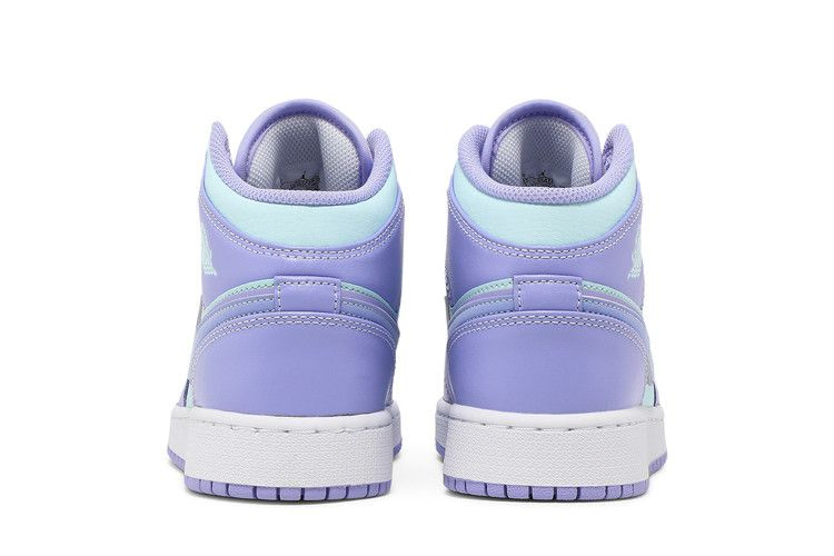 Air Jordan 1 Mid GS "Purple Pulse" - это пастельное воплощение классического силуэта, созданное для маленьких детей. Кожаный верх выполнен в тонком цвете Glacier Blue, контрастирующем с лавандовыми накладками и розовым Jumpman на тканом язычке. Стандартные детали Air Jordan 1 присутствуют и учтены, включая перфорацию на носке и логотип Wings на боковом отвороте воротника. Кроссовки опираются на резиновую подошву, в которую вмонтирован Nike Air, и подкреплены резиновой подошвой с концентрическими кругами.