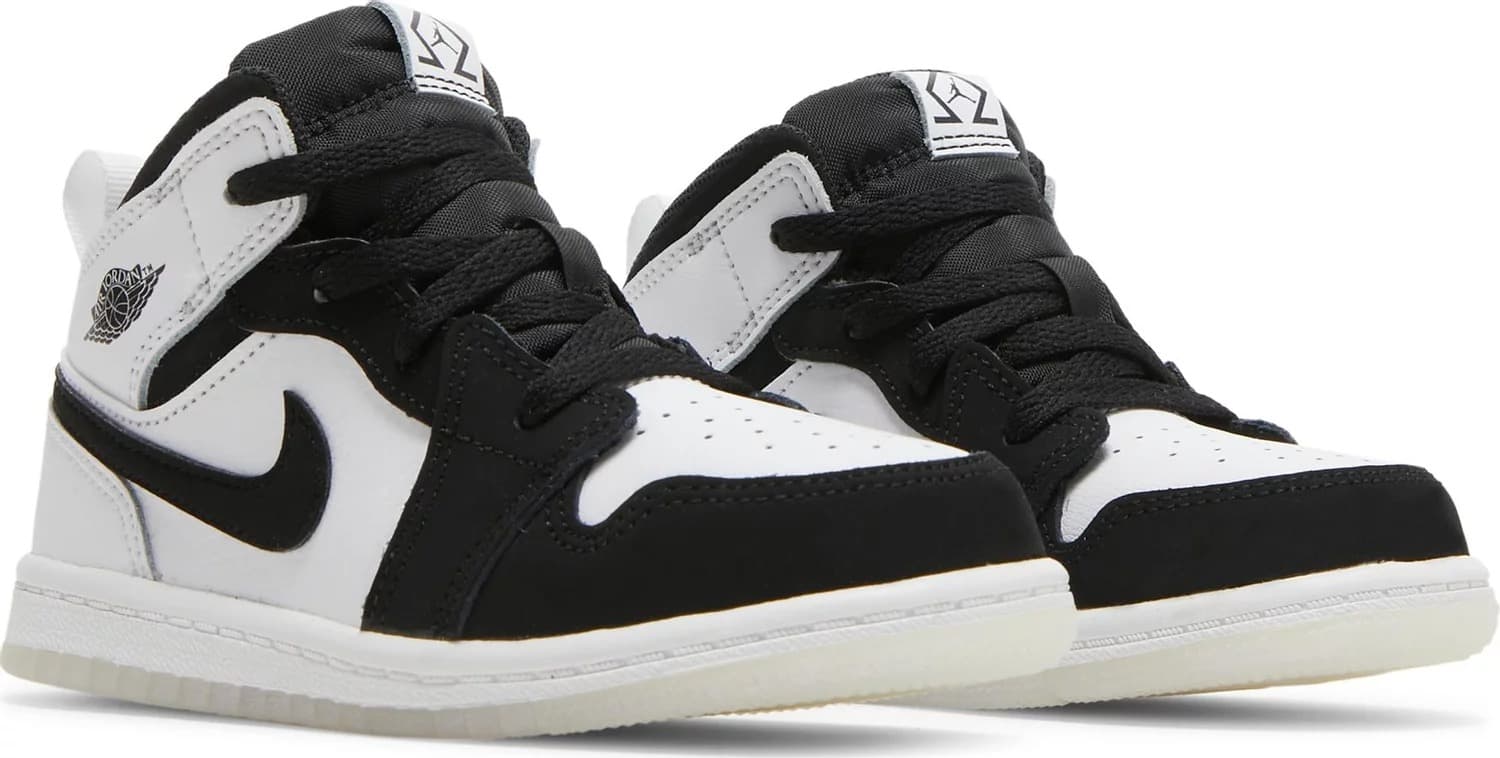 Air Jordan 1 Mid SE TD "Diamond" демонстрирует нейтральные тона на уменьшенном силуэте, созданном для маленьких ножек. Верхняя часть модели выполнена из белой кожи с контрастными акцентами из черного нубука на воротнике, накладке на глаза, носочной части и фирменном логотипе Swoosh. Ромбовидный логотип Jumpman украшает язычок, вдохновленный геометрическими боковыми панелями классической формы "Буллз" Майкла Джордана. Под ногами полупрозрачная резиновая подошва обеспечивает надежное сцепление с поверхностью.- Цвета: White/Multi-Color/Black