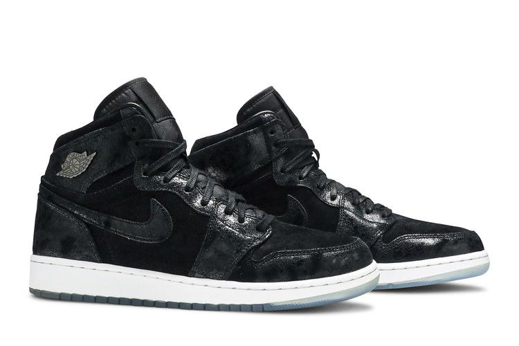 Кроссовки Air Jordan 1 Retro High GG 'Heiress' - одна из моделей, выпущенных в коллекции Jordan 'Heiress' в декабре 2017 года и предназначенных исключительно для девочек в детских размерах. Верхняя часть кроссовок, выполненная из замши с эффектом дистресса, преимущественно черного цвета, имеет культовый дизайн с высоким верхом и тональными деталями, включая фирменный логотип Air Jordan 'Wings'. Белая промежуточная подошва Air дополнена ледяной голубой полупрозрачной подошвой.