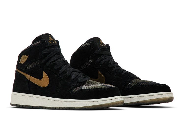 Эта модель Air Jordan 1, выпущенная в рамках кампании Nike по расширению аудитории за счет девочек-школьниц, представляет собой тонкий, но причудливо оформленный хай-топ. Модель Air Jordan 1 Retro High GG Heiress 'Camo' имеет замшевый верх черного цвета с сетчатыми камуфляжными деталями на мыске и лодыжке. Золотые акценты на больших Swoosh и логотипе Wings, а также полупрозрачная подошва с превосходным рисунком сцепления.