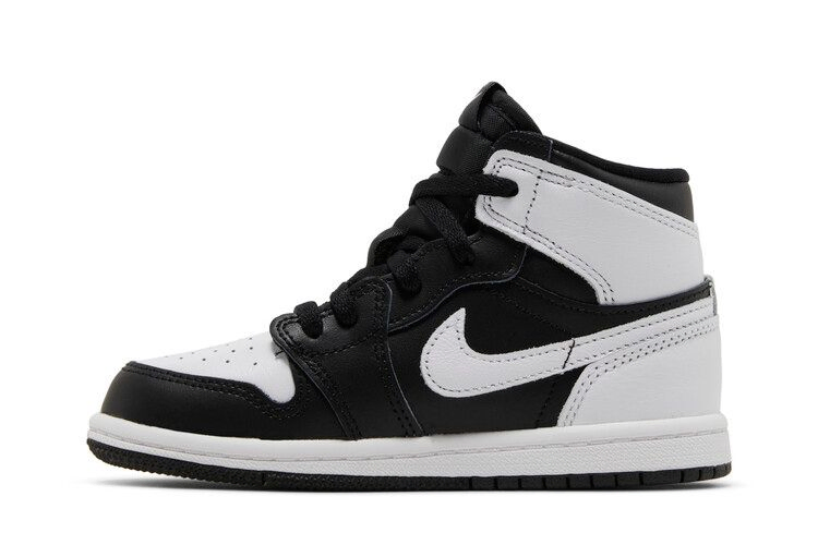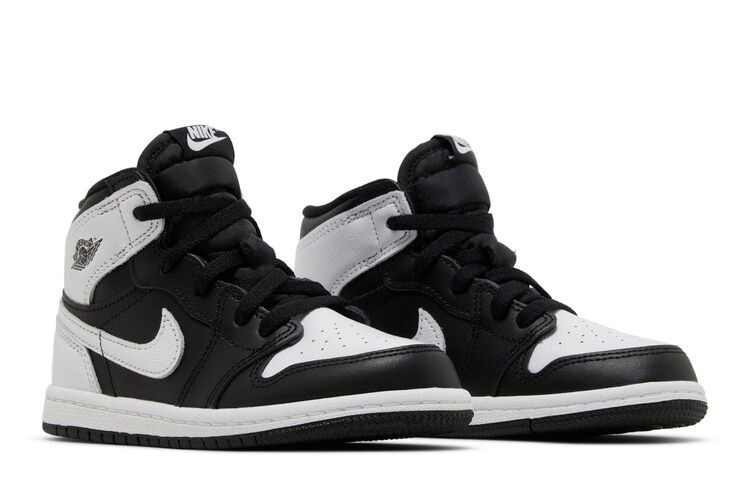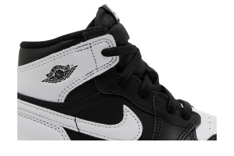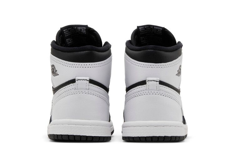 Air Jordan 1 Retro High OG TD 'Black White 2.0' - нейтральная двухцветная модель классического силуэта для маленьких ножек. Кожаный верх выполнен в знакомом цветовом решении "Bred" и имеет сплошную черную основу, контрастирующую с белыми акцентами на носочной части, Swoosh, пятке и воротнике. Знаковый логотип Wings расположен на боковой лодыжке, а тканая бирка Nike - на нейлоновом язычке с легкой подкладкой. Прочная резиновая подошва с вшитыми боковыми стенками, как у оригинальных AJ1, служит опорой для высоких кроссовок.