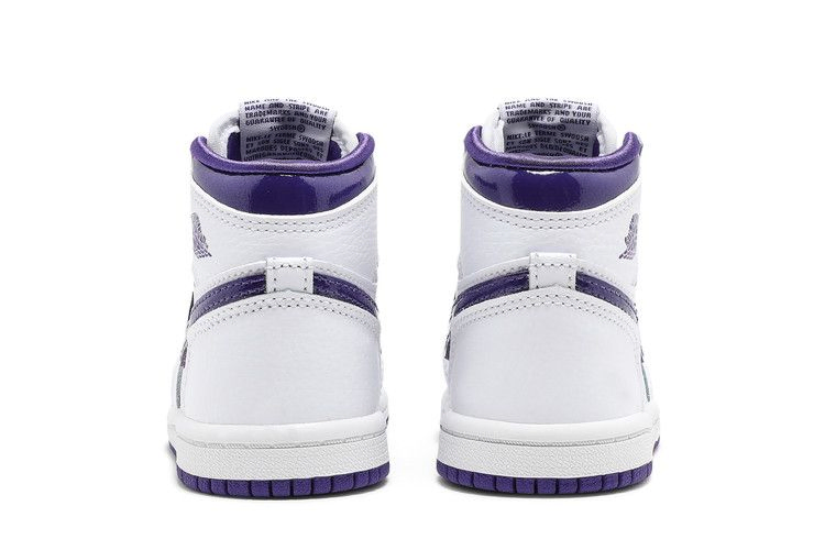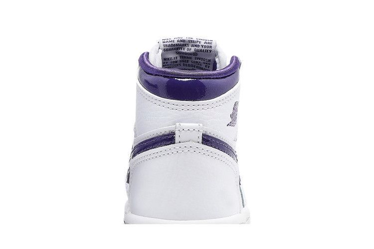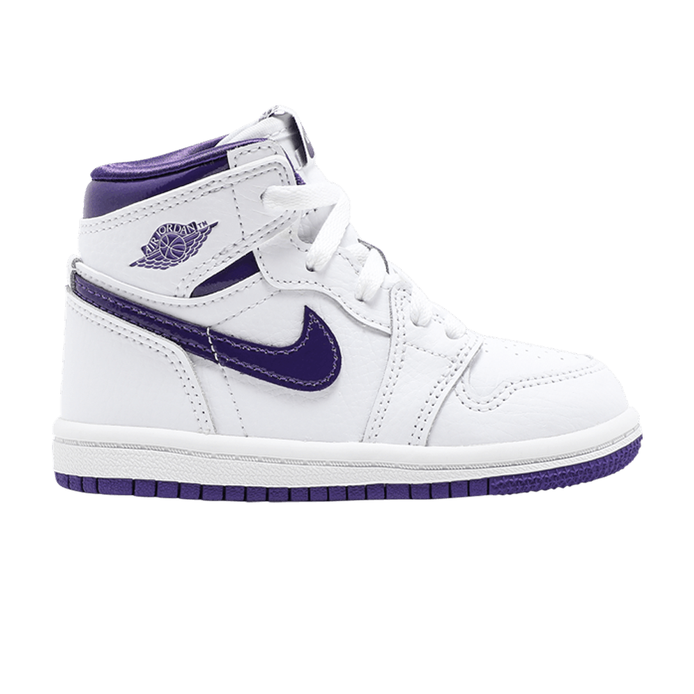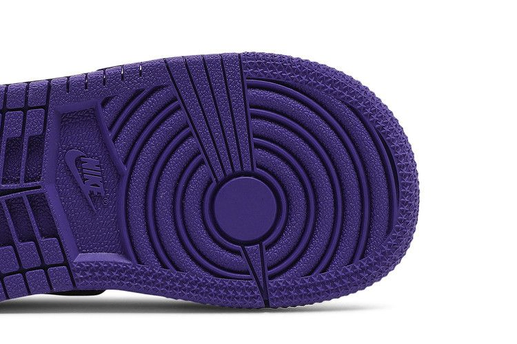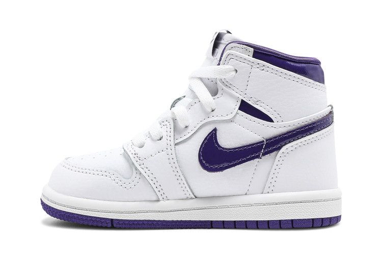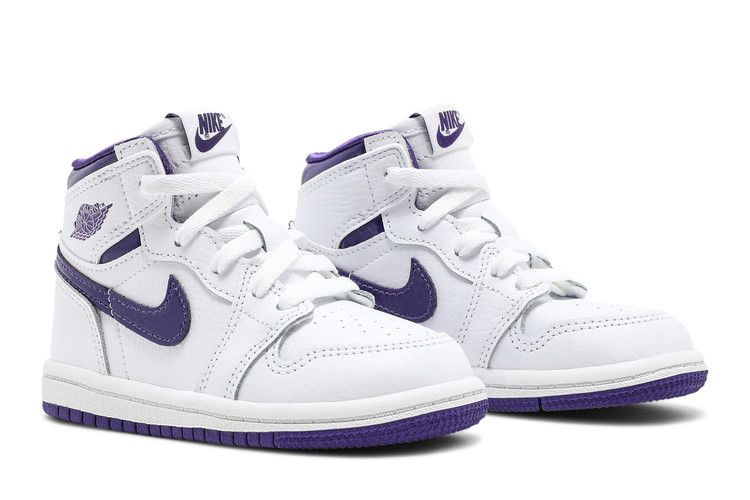 Двухцветная модель Air Jordan 1 Retro High OG TD "Court Purple" вдохновлена одной из моделей OG "Metallic" 1986 года. Эта уменьшенная версия имеет белый кожаный верх с фирменным логотипом Swoosh в глянцевой фиолетовой отделке. Фиолетовый брендинг выполнен в виде тканого язычка Nike и логотипа Jordan Wings на боковом воротнике. Воротник с атласной подкладкой придает обуви полированный вид. На резиновой подошве установлены резиновые накладки со стандартным рисунком AJ1 на резиновой подошве.