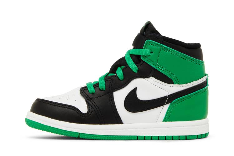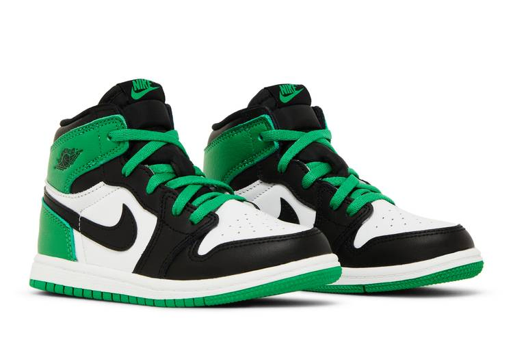 Air Jordan 1 Retro High OG TD "Lucky Green" - это уменьшенный силуэт, выполненный в классическом цветовом решении "Black Toe". Верх из гладкой кожи сочетает в себе белую основу с черной накладкой на носке и фирменным логотипом Swoosh. Воротник и накладка на пятке выполнены в привлекательном изумрудном оттенке, заменившем малиновые акценты модели OG 1985 года. Детали наследия включают перфорацию на носке, тканый язычок Nike и цельную резиновую подошву ярко-зеленого цвета.