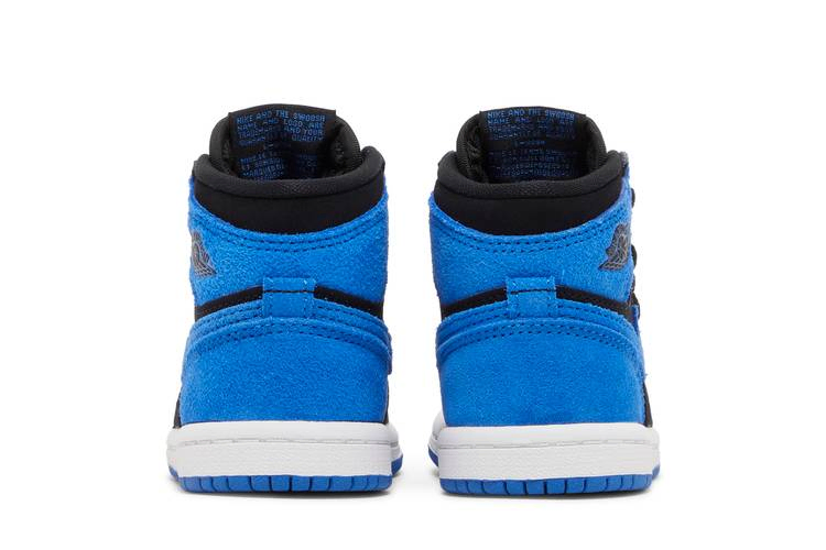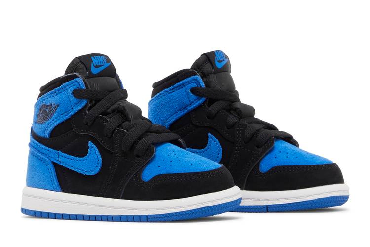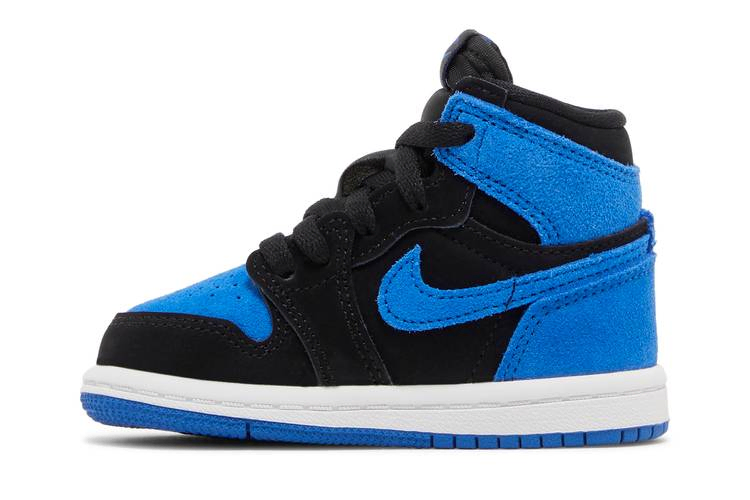 Созданные для растущих ног, Air Jordan 1 Retro High OG TD "Royal Reimagined" заменяют традиционную кожаную конструкцию на эластичную замшу. Черная основа с контрастными королевскими синими акцентами на мыске, пятке, Swoosh и накладке воротника. Последний отмечен логотипом Wings, а язычок украшает тканая бирка Nike Air. Подошва из прочной резины сочетает в себе классические белые боковины и синюю резиновую подошву.