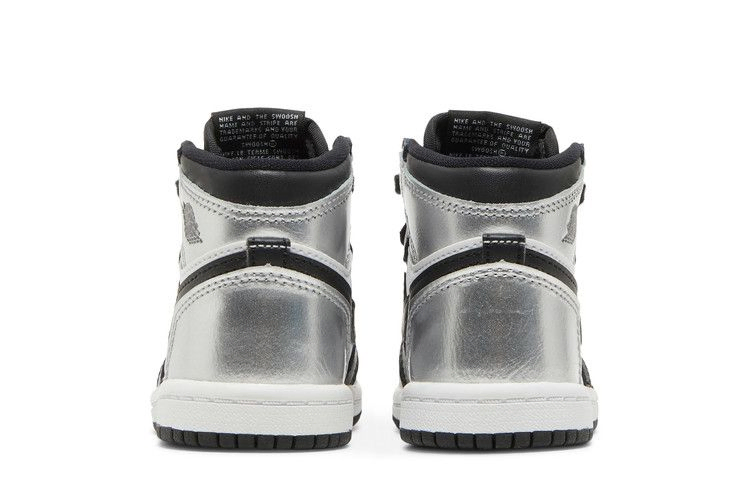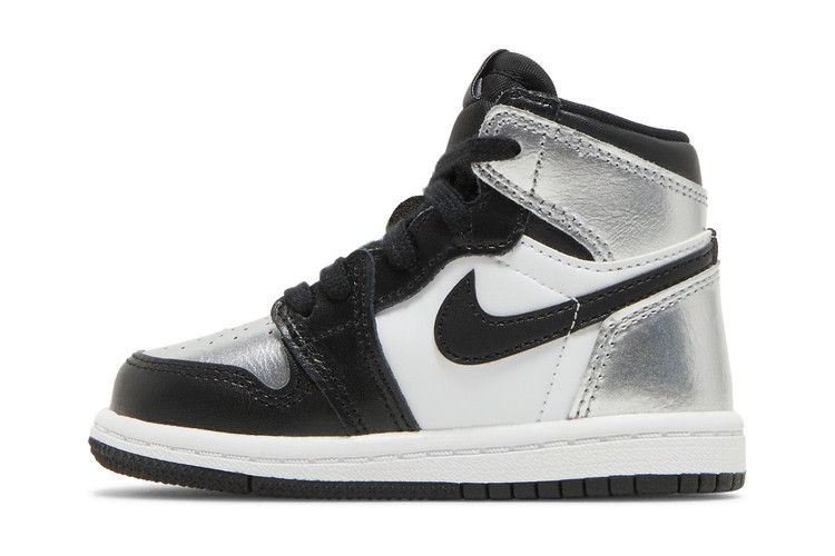 Air Jordan 1 Retro High OG TD "Silver Toe" - это миниатюрная версия кроссовок, с которых все началось, выполненная в цветовой гамме, напоминающей лакированную кожу "Gold Toe" AJ1 2018 года. В этой паре золотистые элементы старой модели заменены на характерную серебристую отделку. Тканая бирка Nike на язычке и логотип Wings на боковом отвороте воротника поддерживают эстетику OG Jordan 1. Мягкая стелька из пеноматериала обеспечивает легкую амортизацию для маленьких ножек.