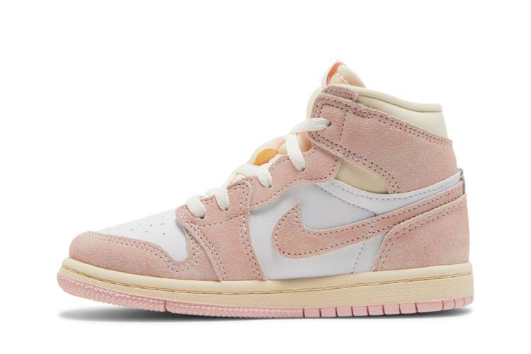 Уменьшенные для маленьких ножек, Air Jordan 1 Retro High OG TD 'Washed Pink' привносят состаренную эстетику в пастельную расцветку нестареющего силуэта. Верхняя часть сочетает в себе белую кожаную основу с выцветшими розовыми замшевыми накладками и подобранным по цвету логотипом Swoosh. Традиционные элементы брендинга включают тканый язычок Nike и логотип Wings на боковом воротнике. Кроссовки оснащены предварительно пожелтевшей винтажной подошвой, которая поддерживается подошвой из мягкой розовой резины.