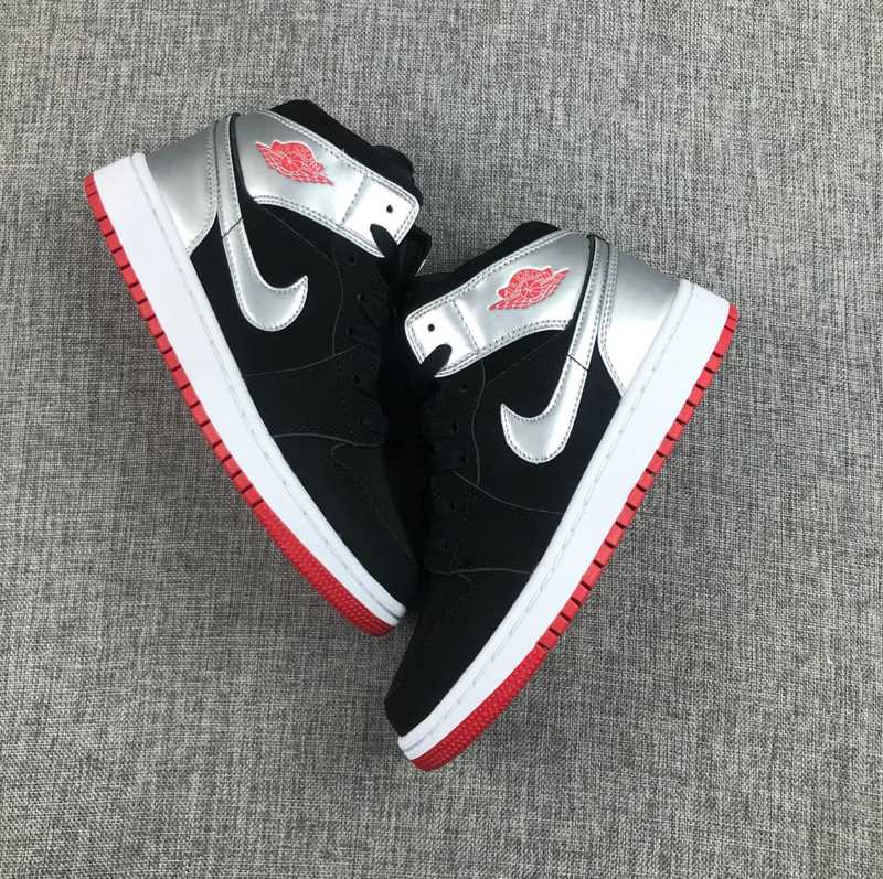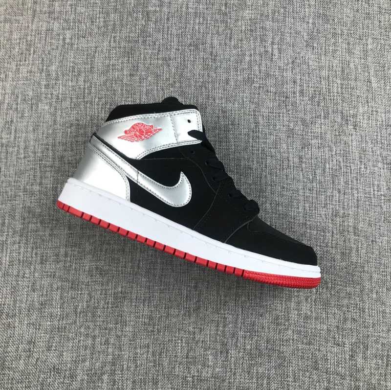 - Кроссовки Air Jordan 1 Retro Mid GS Black Silver