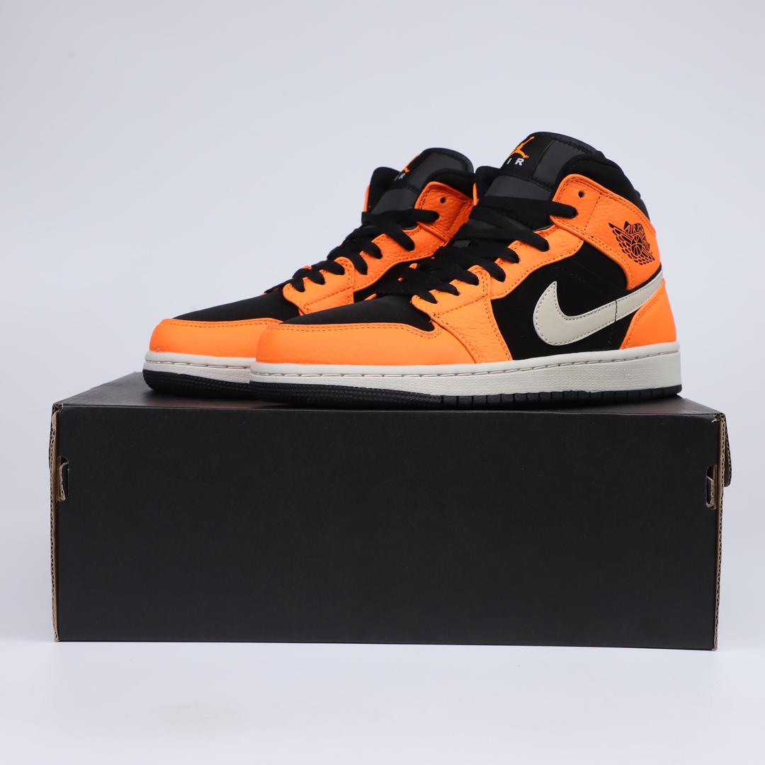 Кроссовки Air Jordan 1 Retro Mid GS Orange Black купить оригинал - цена в Москве и России с бесплатной доставкой - артикул 554725-062