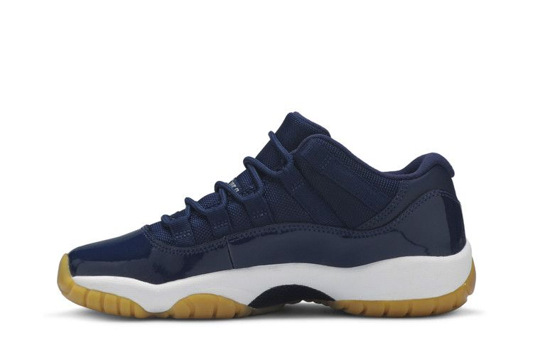 Созданные по просьбе самого Джордана, кроссовки Air Jordan 11 Low, ориентированные на стиль жизни, стали желанными сами по себе. Выпущенные летом 2016 года, Air Jordan GS Retro Low 'Navy Gum' имеют однотонный низкий верх темно-синего цвета, отделанный культовой лакированной кожей. Фирменные элементы включают надпись и логотип Jumpman на языке и логотип на пятке с цифрой "23" на пятке. Эта версия GS предназначена для детей, но сохраняет все классические черты Air Jordan 11.