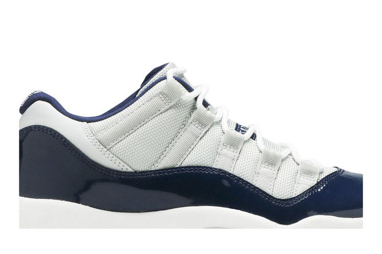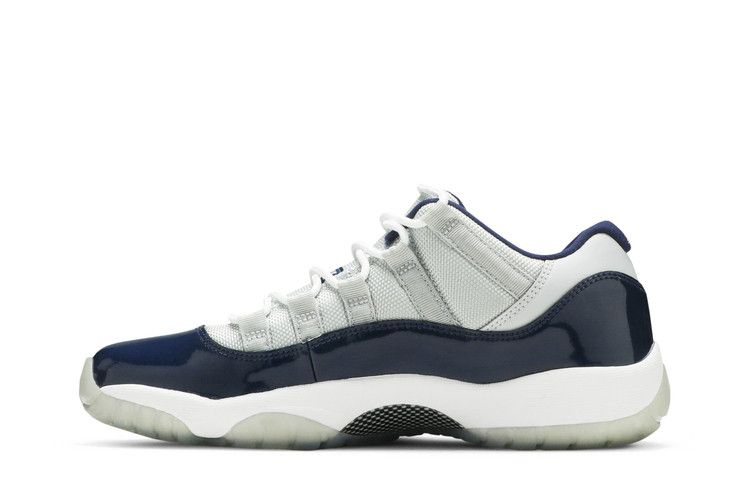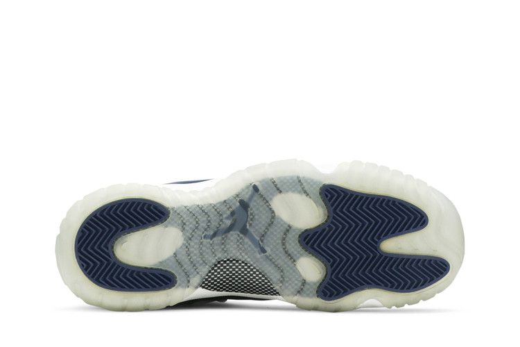 Кроссовки Air Jordan 11 Retro Low GB "Georgetown" были выпущены весной 2015 года и сразу же привлекли к себе внимание, учитывая, что Майкл Джордан забил победный мяч в матче против Джорджтауна во время чемпионата NCAA 1982 года для Северной Каролины. Эта версия кроссовок с низким верхом выполнена из сетчатого материала Low Grey Mist с накладкой из лакированной кожи цвета Midnight Navy - в знак уважения к цветам колледжа. Ледяная полупрозрачная подошва завершает минимальную расцветку.