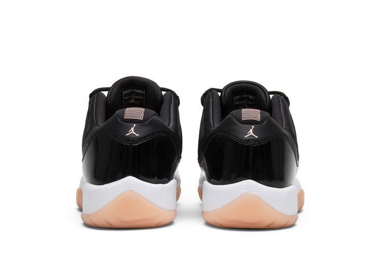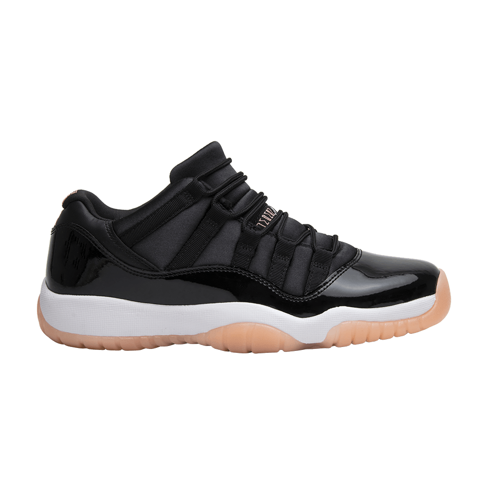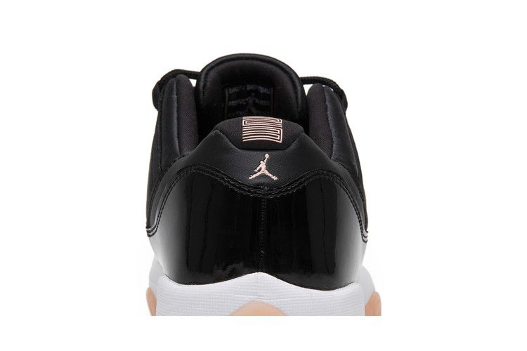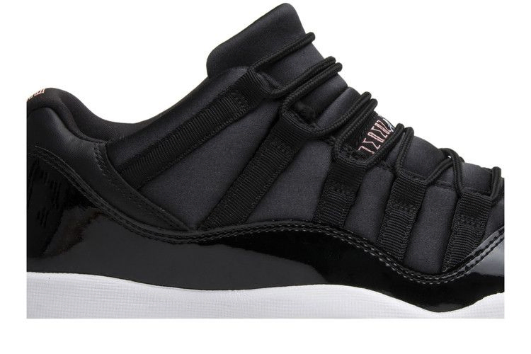 Jordan Brand выпустил эту расцветку Bleached Coral модели Air Jordan 11 Retro Low эксклюзивно для девочек в апреле 2018 года. Этот школьный вариант отличается полностью черной отделкой верха из синтетики и лакированной кожи. На задней части воротника расположены детали из зернистой кожи, а люверсы из нейлоновой тесьмы добавляют декоративный штрих. Контрастная расцветка представлена элементами брендинга и резиновой подошвой цвета Bleached Coral.