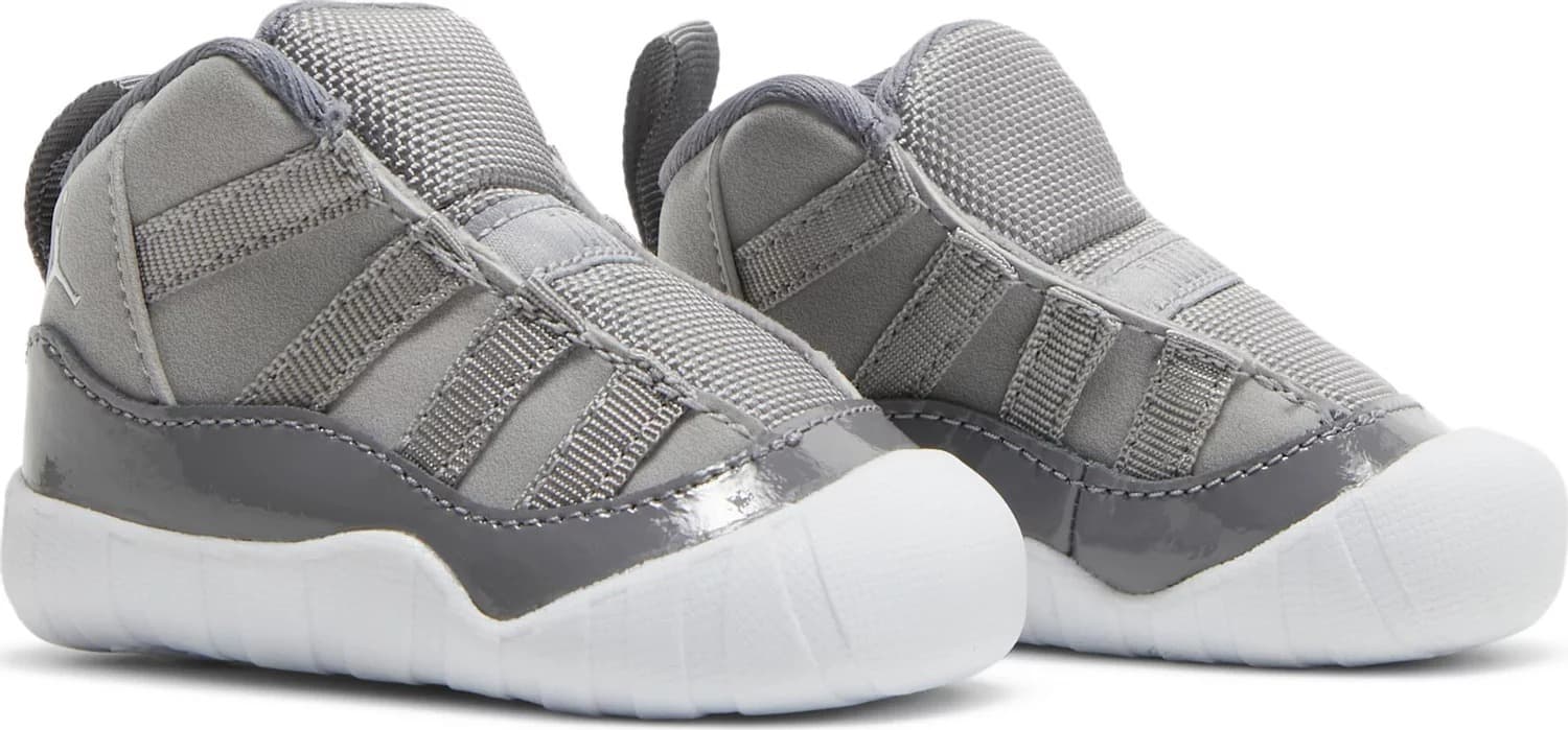 Выпуск 2021 года Air Jordan 11 Retro CB "Cool Grey" представляет классическую расцветку для самых маленьких поклонников Джордана. Вдохновленные оригинальным выпуском 2001 года, кроссовки имеют удобную конструкцию без шнурков, подчеркнутую верхом из серого нубука с накладкой из лакированной кожи в тон и язычком из мягкой сетки. Стелька на пятке сочетается с боковой застежкой с крючками и петлями для удобства надевания и снимания. Подошва из пеноматериала обеспечивает легкую амортизацию при каждом шаге.- Цвета: Medium Grey/White/Cool Grey