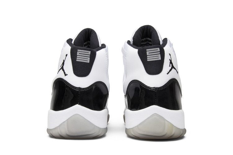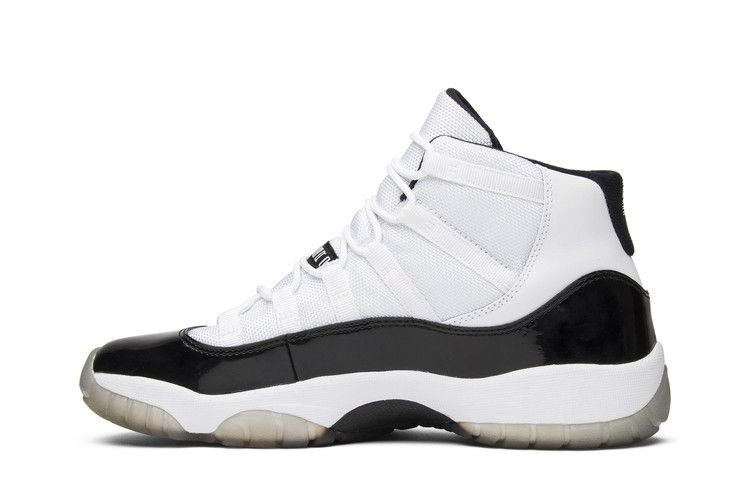 Модель Air Jordan 11 "Concord" была выпущена в 1995 году и представляет собой оригинальную расцветку 11-го фирменного кроссовка Джордана. Air Jordan 11 Retro GS 'Concord' 2011 возвращает культовые кроссовки с точным воспроизведением оригинала. Верх кроссовок выполнен из белой сетки и черной лакированной кожи, а подошва - белая и полупрозрачная.