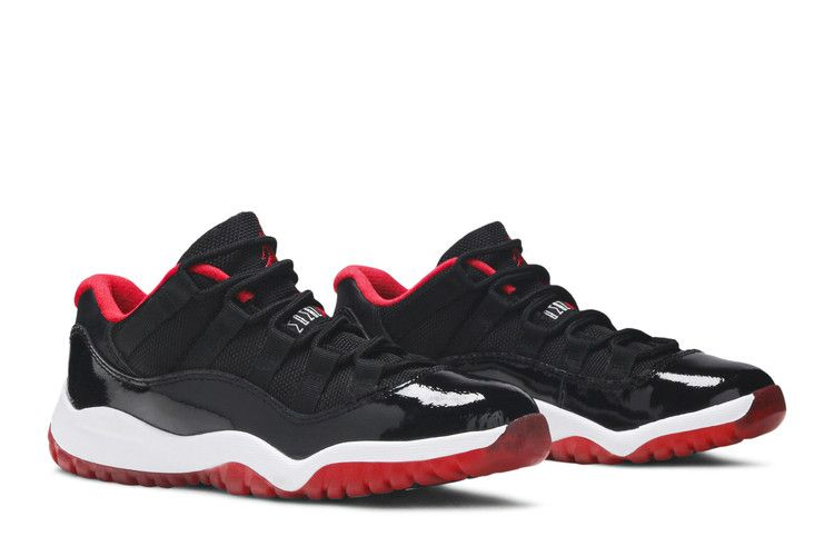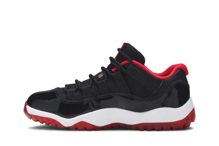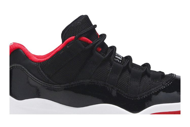Отмечая 30-летие бренда Jordan и 20-летие модели AJ 11, эта вариация Air Jordan 11 стала одним из самых долгожданных релизов 2015 года, поскольку вернула культовую расцветку "Bred" и представила совершенно новый формат низкого верха. Как и оригинал, кроссовки имеют преимущественно черный верх из лакированной кожи и сетки, белую промежуточную подошву и полупрозрачную подошву True Red.