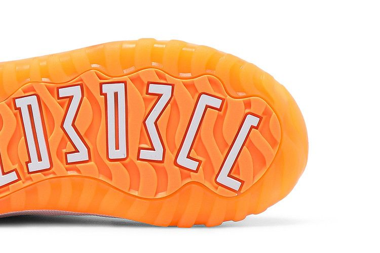 Air Jordan 11 Retro Low PS "Bright Citrus" возвращает классическую расцветку 2001 года в уменьшенном варианте, предназначенном для маленьких ножек. Низкие кроссовки выполнены из белой кожи с эластичными шнурками без завязок и усилены накладкой из лакированной кожи в тон. Ярко-оранжевый брендинг Jumpman расположен на язычке и пятке. Цитрусовый оттенок повторяется на резиновой подошве с гибкими канавками и увеличенным логотипом Jordan.