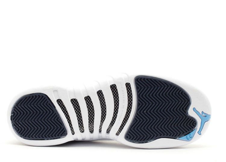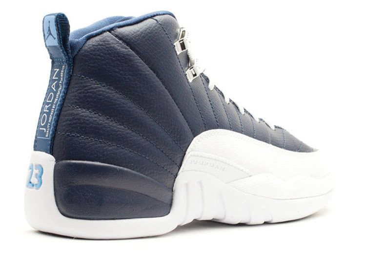 Дизайн Jordan 12, разработанный Тинкером Хэтфилдом, вдохновлен флагом восходящего солнца и женскими сапогами 19 века. Модель Air Jordan 12 Retro "Obsidian" была выпущена в 1997 году, и эта школьная версия 2012 года имеет верх из кожи цвета обсидиана с накладками из белой шагреневой кожи. Кроме того, на подкладке и язычке пятки красуется брендинг University Blue, French Blue и белая резиновая подошва с голенищем из углеродного волокна и системой Zoom Air.