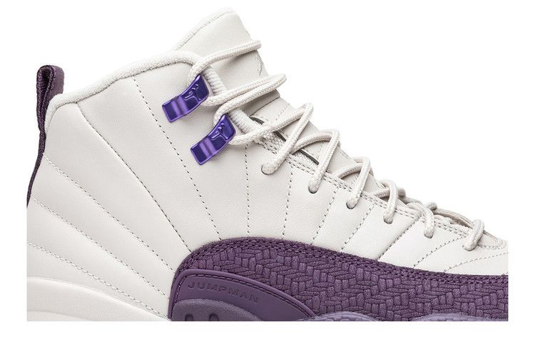 Air Jordan 12 Retro GS 'Pro Purple' обновляет классический силуэт двухцветным дизайном, который применяется к цельнокожаной конструкции с искусственными ткаными деталями на брызговике. В дополнение к цвету Desert Sand, дополнительные элементы Pro Purple присутствуют на литых люверсах, пяточной петле и резиновой подошве, причем последняя имеет протектор в виде елочки.