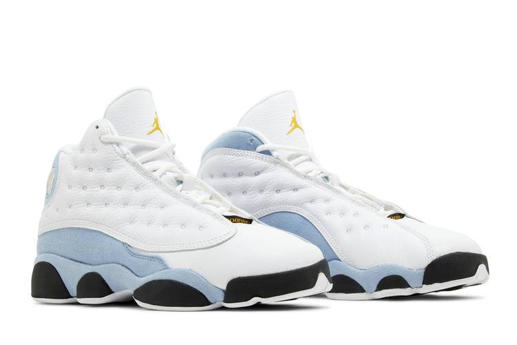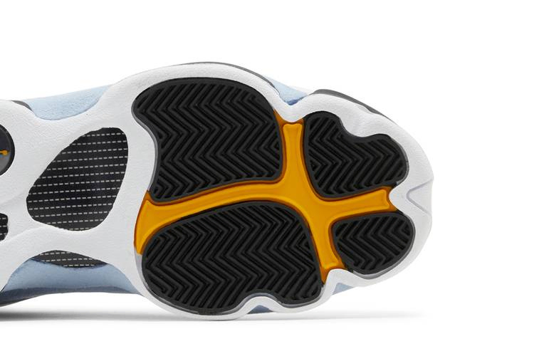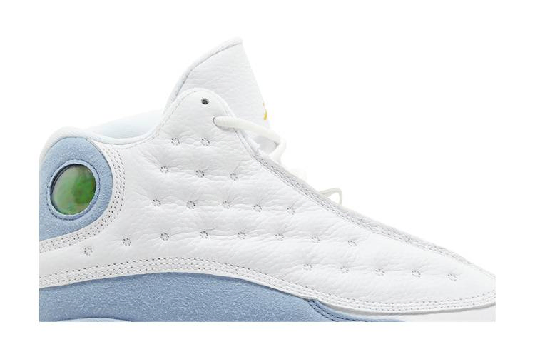 Созданные для больших детей, Air Jordan 13 Retro GS "Blue Grey" демонстрируют цветовые блокировки в стиле OG. Верхняя часть из белой кожи с ямочками и накладками из белой кожи и синтетической замши синевато-серого оттенка. Желтый логотип Jumpman вышит на язычке, а голографический глаз AJ13 украшает боковой воротник. Кроссовки опираются на легкую подошву Phylon с черными вставками, подчеркивающими подошву в виде лапы пантеры.