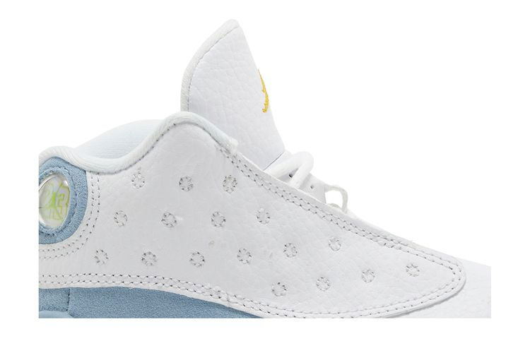 Air Jordan 13 Retro TD "Blue Grey" - это кроссовки в стиле OG, созданные для маленьких ножек. Верхняя часть с ямочными накладками из белой кожи и гладкой белой кожей в передней части стопы. Синевато-серая искусственная замша тянется от середины стопы и огибает пятку. Язычок украшен логотипом Jumpman цвета желтой охры, а на боковом воротнике красуется голографический глаз AJ13. Подошва из резины с елочным рисунком обеспечивает надежное сцепление с поверхностью.
