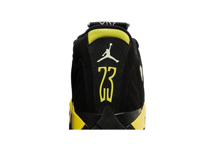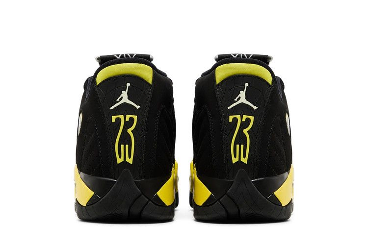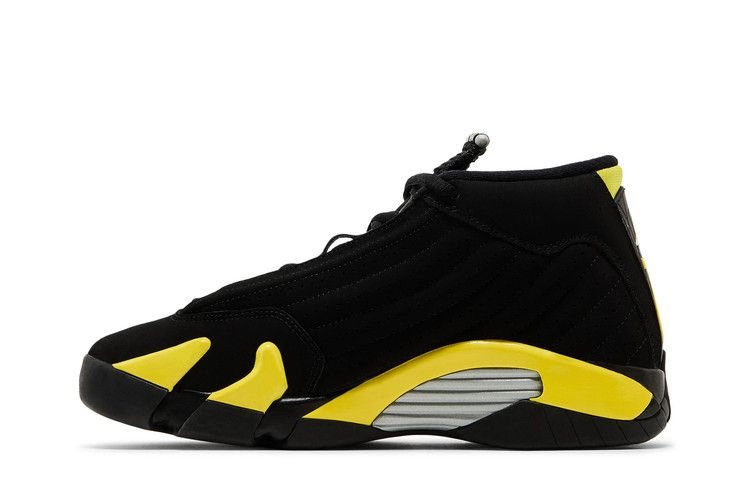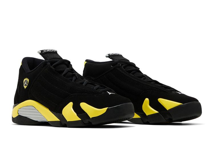 Представьте себе, что автомобили Ferrari могли бы существовать в виде обуви. Nike попытался создать расцветку, вдохновленную автомобильным брендом, с Air Jordan 14 Retro BG 'Thunder'. Кроссовки выполнены из мягкой черной кожи с перфорацией на боковой стенке и пятке, а также со стегаными деталями. Кроссовки также имеют мягкий воротник, систему шнуровки с завязками, синтетическую пятку для поддержки и яркие желтые акценты.