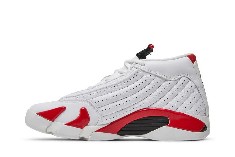 Кроссовки Air Jordan 14 Retro GS 'Candy Cane' 2019 - это молодежное издание оригинальной расцветки Air Jordan 14. Модель, выпущенная в апреле 2019 года и рассчитанная на детские ноги, изготовлена из натуральной и искусственной кожи. Модель AJ14 имеет низкий крой и создана для скорости, как и ее оригинальный вдохновитель - спортивный автомобиль Ferrari 500 M Майкла Джордана - с амортизацией Zoom Air в пятке.