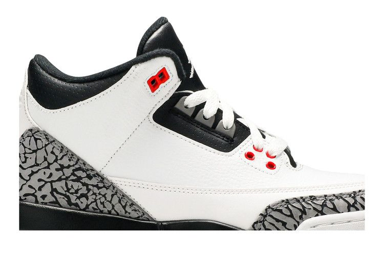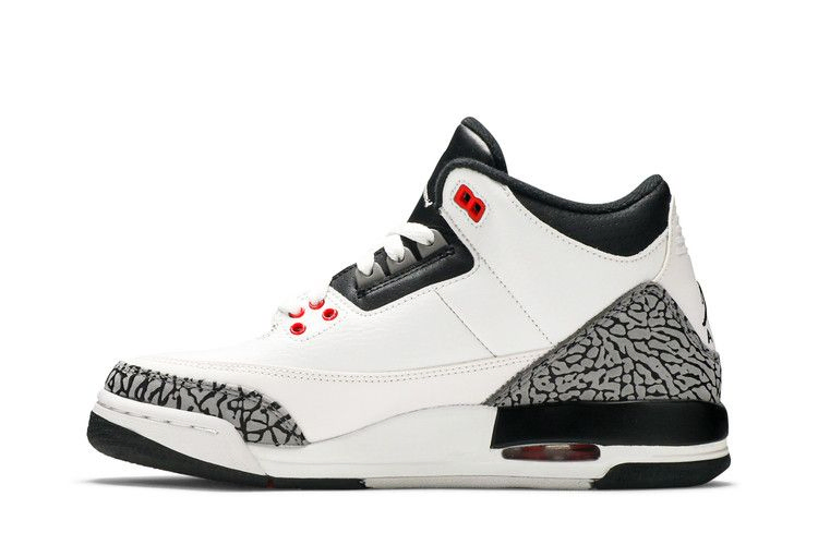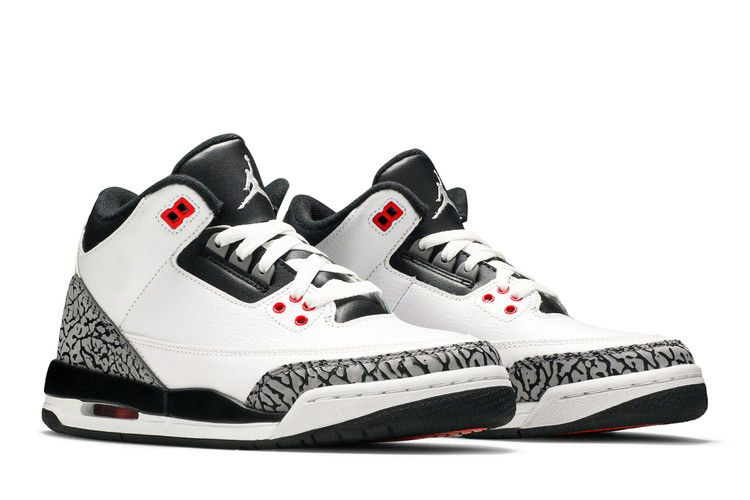 Air Jordan 3 Retro BG 'Infrared 23' слегка изменяет внешний вид модели Jordan 3 из белого цемента, сохраняя принт слона и добавляя черные акценты на носке, заднике и межподошве. Инфракрасные тона заменяют огненно-красные, появляясь на люверсах и видимом блоке Air.