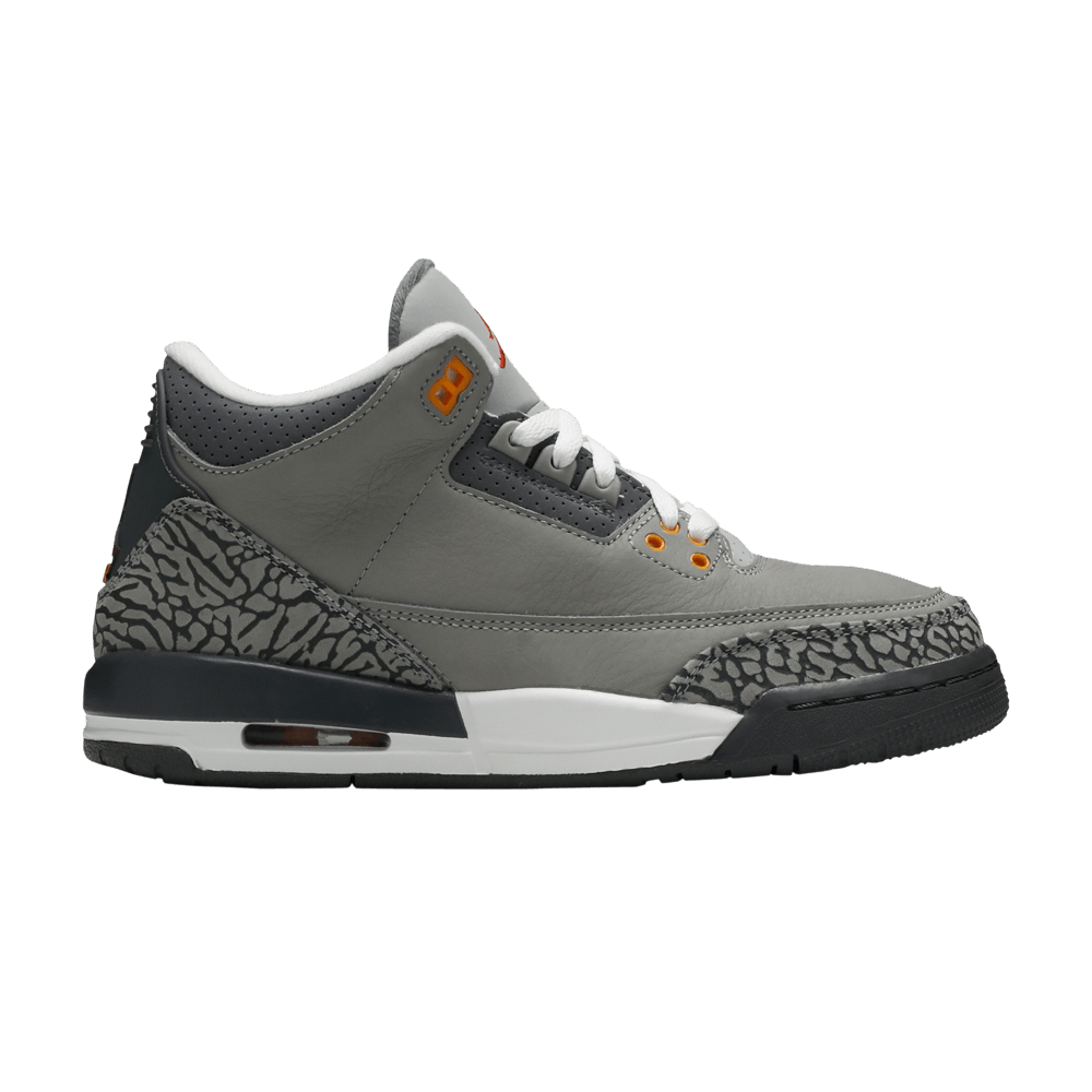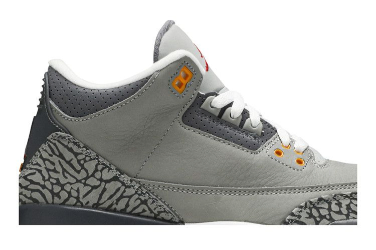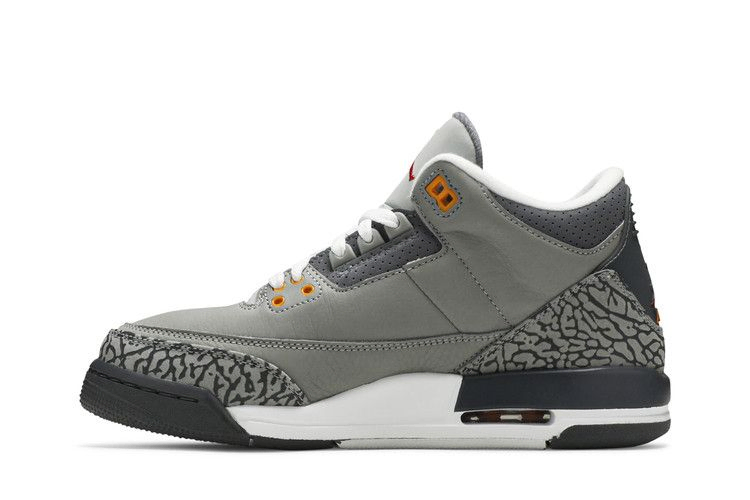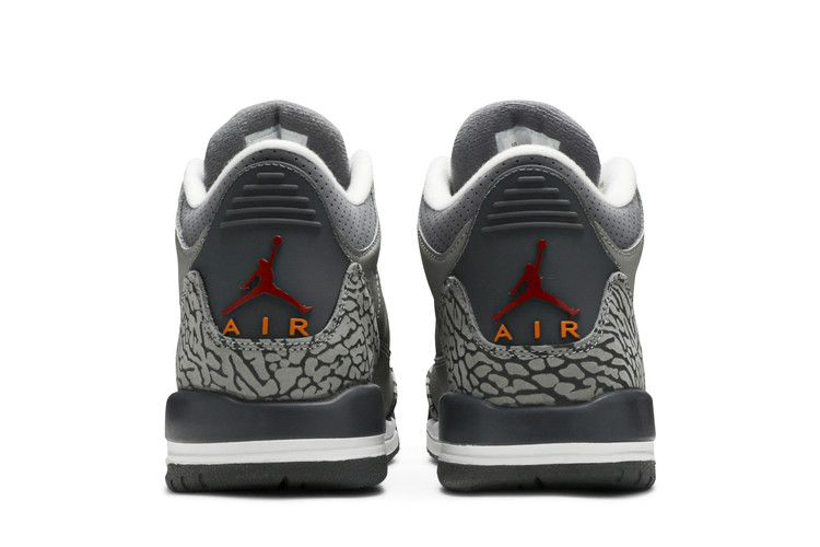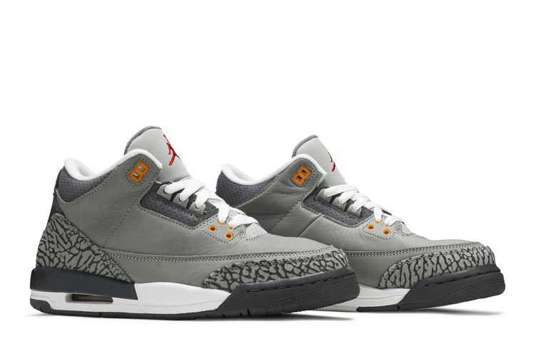 Переиздание Air Jordan 3 Retro GS "Cool Grey", разработанное для больших детей, в 2021 году впервые возвращает любимую фанатами расцветку 2007 года. Верхняя часть кроссовок выполнена из кожи нейтрального серого цвета и дополнена тональными накладками в виде слоновьего принта на носке и пятке. Тонкие вкрапления оранжевого и спортивного красного цвета присутствуют на деталях кроссовка, включая литые люверсы, видимую амортизацию подошвы Air и брендинг Jumpman на язычке и пятке.