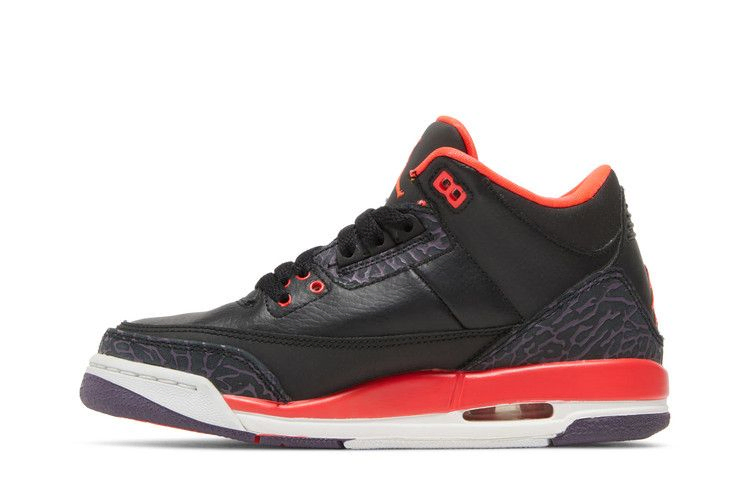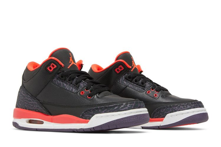 В 2013 году компания Nike выпустила обновление классического силуэта Air Jordan 3. Модель Air Jordan 3 Retro GS "Crimson" имеет верх из черной кожи с акцентами в виде слоновьего принта Canyon Purple на пятке, брызговике и заднике, этот цвет также присутствует на подошве. Яркие малиновые детали украшают люверсы, межподошву и подкладку. Эксклюзив для начальной школы также оснащен блоком Air в белой промежуточной подошве для амортизации и комфорта.