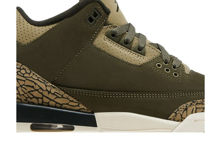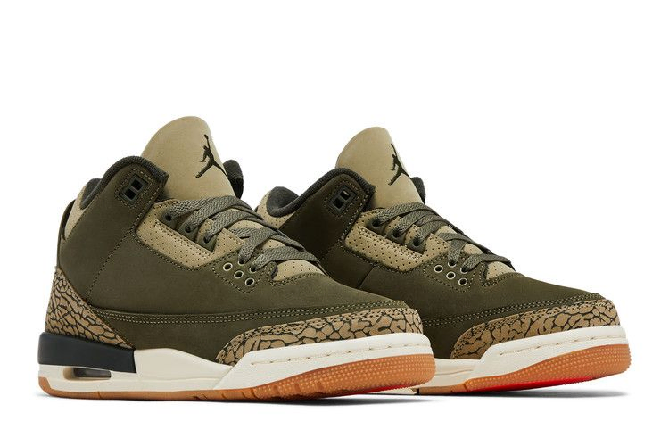 Созданные для больших детей, Air Jordan 3 Retro GS "Family Affair" имеют верх из оливково-зеленого нубука с тональными накладками с принтом слона на носочной и пяточной частях. Вышитый логотип Jumpman украшает язычок, а брендинг Nike Air - формованный язычок на пятке. Унаследованный от прошлого силуэт установлен на белую полиуретановую промежуточную подошву, оснащенную амортизирующей подошвой Air и украшенную темно-оливковым цветом, который обволакивает пятку. Подошва из резины обеспечивает надежное сцепление с поверхностью.