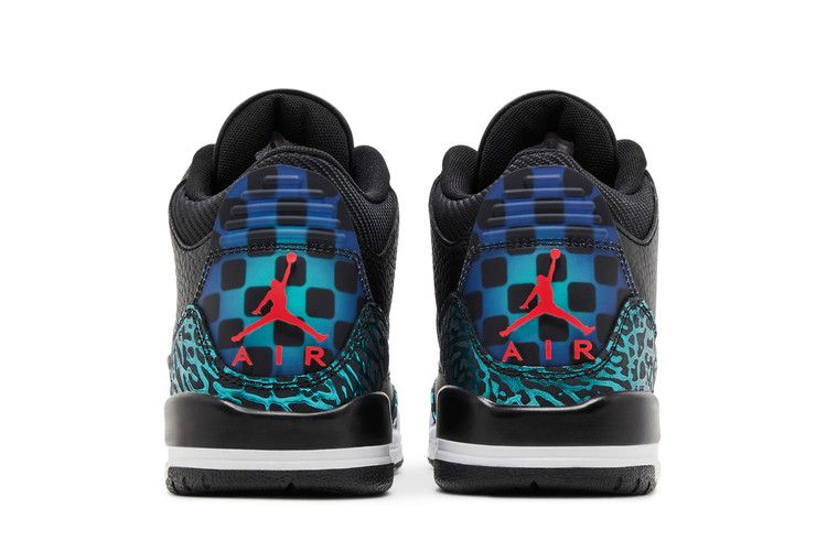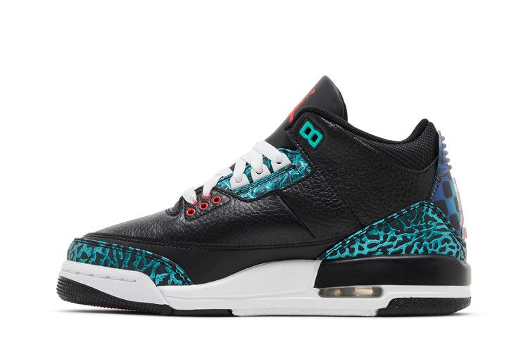 Air Jordan 3 Retro GS 'Moto' - эксклюзивная детская модель, вдохновленная любовью Майкла Джордана к автоспорту. Классический силуэт выполнен из черной галтованной кожи и украшен накладками с принтом слона в цвете Hyper Jade на носочной и пяточной частях. Малиновый брендинг Jumpman украшает язычок и полупрозрачную панель на пятке, обновленный шашечным узором, который отсылает к гоночной тематике кроссовок. Кроссовки опираются на легкую промежуточную подошву из пеноматериала с видимым блоком подошвы Air, расположенным в пятке.