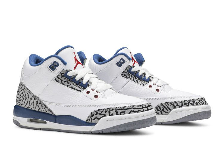 Выпущенные в июне 2011 года кроссовки Nike Air Jordan 3 Retro GS 'True Blue' возрождают классику 1988 года. Эта детская модель имеет верх из зернистой кожи и структурированную окантовку вдоль пятки. На пятке и носке расположены фирменные накладки с принтом слона, разработанные при участии самого Майкла Джордана. В нижней части подошвы находится амортизирующий элемент Air.