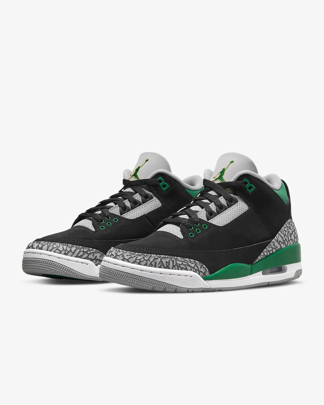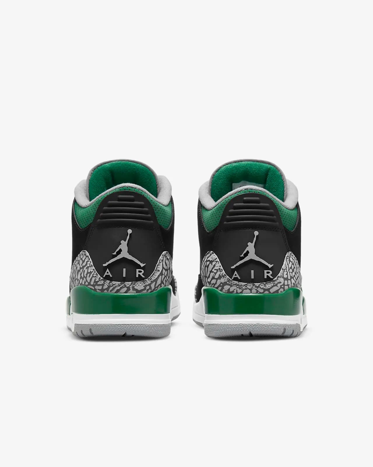 Созданная для маленьких детей модель Air Jordan 3 Retro PS "Pine Green" добавляет яркие цветовые акценты к модели, которая изначально была выпущена в 1988 году. Верхняя часть выполнена из гладкого черного нубука с фирменными накладками в виде слоновьего принта на носке и пятке. На люверсах, перфорированном воротнике и значке Jumpman, вышитом на язычке, контрастно выделяется цвет Pine Green. Второй логотип Jumpman вытиснен на задней части пятки. Кроссовки опираются на двухцветную подошву из вспененного материала, а под ногами у них прочная подошва из серой резины.- Цвета: Black/Silver/White/Pine Green