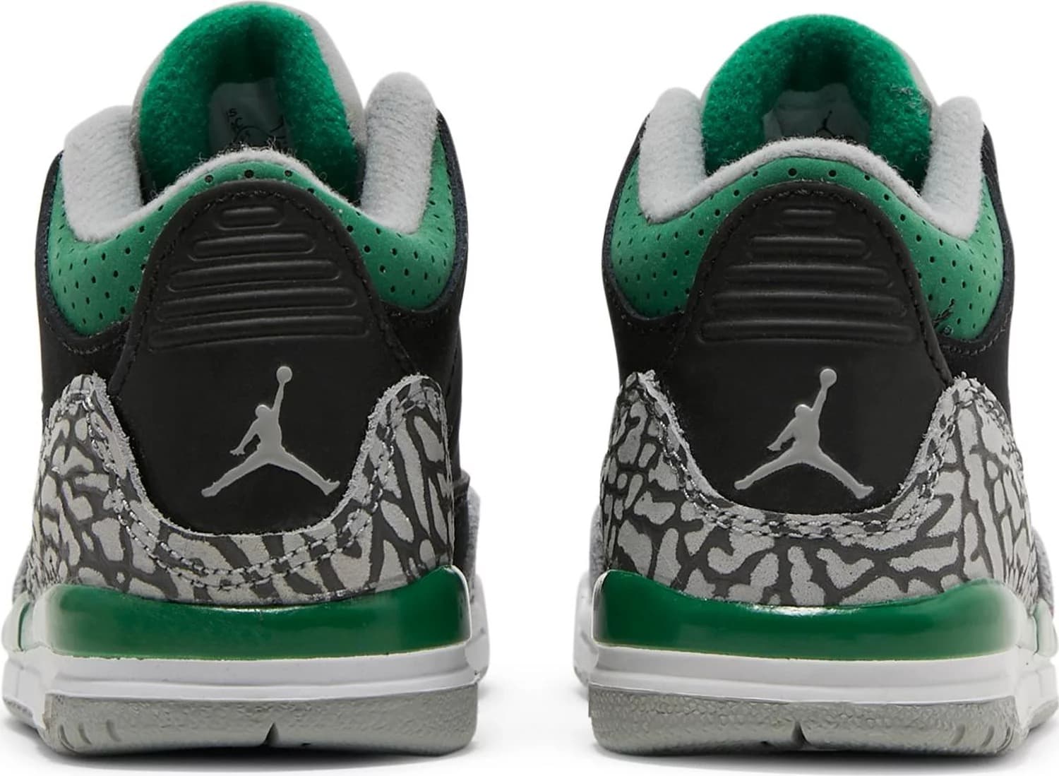 Air Jordan 3 Retro TD "Pine Green" представляет обновленную расцветку культового силуэта для растущих ног. Верх из черного нубука укреплен фирменными накладками с принтом слона на носке и пятке. Контрастные зеленые акценты расположены на перфорированном воротнике, мягкой подошве из вспененного материала и логотипе Jumpman, вышитом на язычке. Дополнительный логотип Jumpman украшает заднюю часть пятки и стельку из пеноматериала. Под ногами располагается массивная резиновая подошва с круговым рисунком сцепления для надежного сцепления.- Цвета: Black/Silver/White/Pine Green