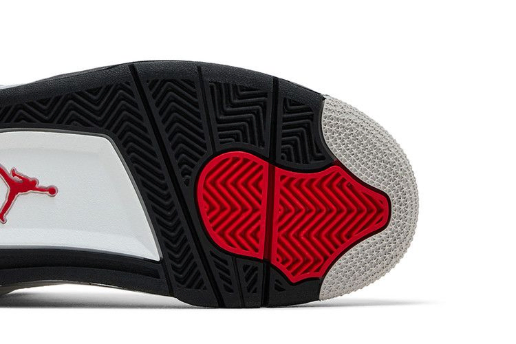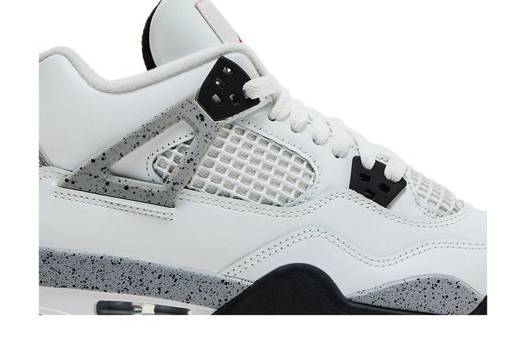 Модель 2025 года Air Jordan 4 Retro OG GS "White Cement" выполнена из гладкой белой кожи, украшена воздухопроницаемой сеткой на четверть панели и литыми черными люверсами. Алый логотип Jumpman украшает язычок Flight, а брендинг Nike Air - пятку с серыми крапинками. Отличительная отделка повторяется на опорных крыльях из TPU и полиуретановой промежуточной подошве, оснащенной видимым блоком подошвы Air в пятке. Подошва из резины с рисунком "елочка" обеспечивает надежное сцепление с поверхностью.