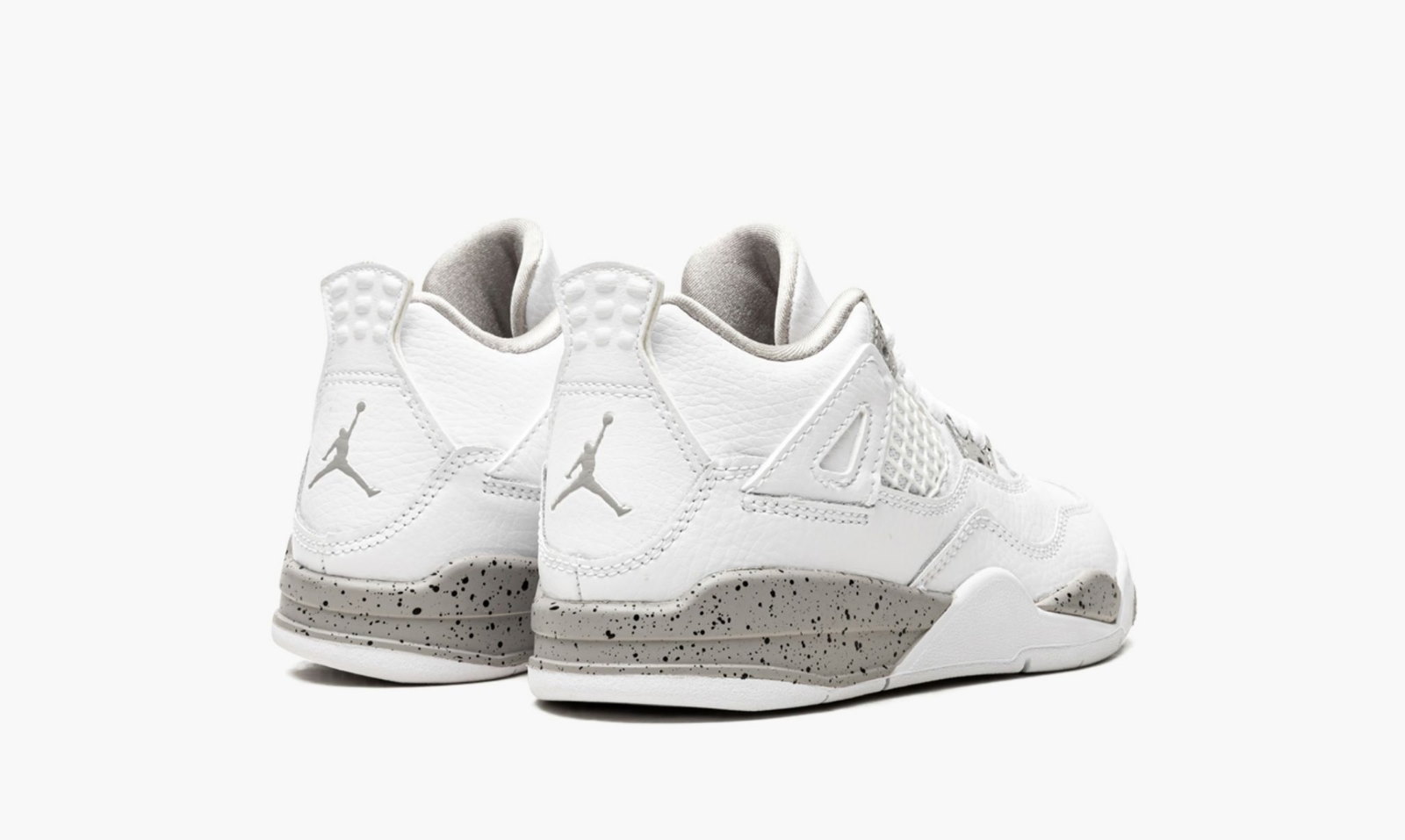 Созданные для маленьких детей, кроссовки Air Jordan 4 Retro PS 'White Oreo' представляют собой нейтральную расцветку винтажного дизайна Тинкера Хэтфилда 1989 года. Кроссовки имеют верх из белой кожи с легкими вставками Tech Grey, пятнистую мидсоль из пеноматериала. Соответствующий серый логотип Jumpman на пятке контрастирует с алым значком Jumpman на язычке. Релиз со ВЗРОСЛЫМИ размерами находится по ссылке.