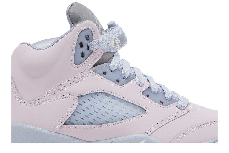 Air Jordan 5 Retro SE GS 'Easter' - это весеннее сочетание цветов в школьной версии дизайна Тинкера Хэтфилда 1990 года. Нежно-розовый оттенок заливает кожаный верх, полупрозрачный TPU на литых люверсах и сетке четвертей. Вышитый брендинг Jumpman украшает накладку на пятке и отражающий серебристый язычок. Разноцветные накладки на носках отсылают к традиции окрашивания пасхальных яиц. Кроссовки опираются на полиуретановую подошву с видимым блоком Air-sole в пятке и полупрозрачной резиновой подошвой аква-цвета.- Артикул: DV0563-600