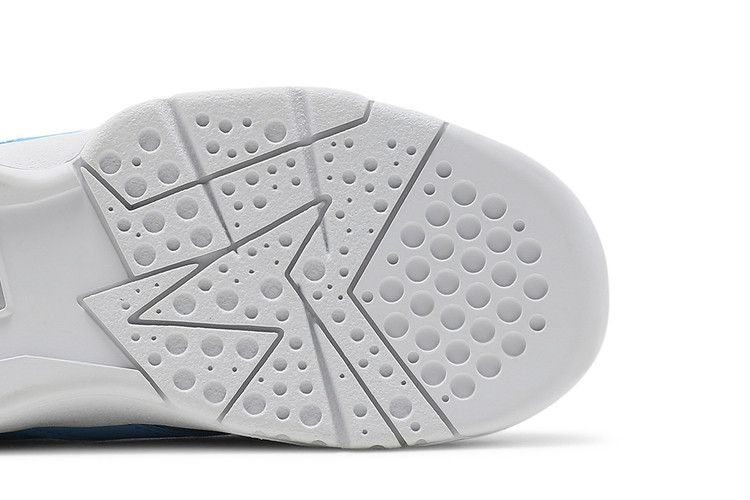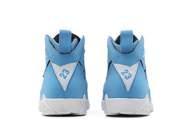 Модель Air Jordan 7 Retro PS "Pantone" посвящена игровым дням Майкла Джордана в команде Университета Северной Каролины Tar Heels и выполнена из кожи в синем цвете. Контрастные белые акценты присутствуют на логотипах Jumpman и промежуточной подошве, а амортизация Air спрятана внутри угловатой промежуточной подошвы.