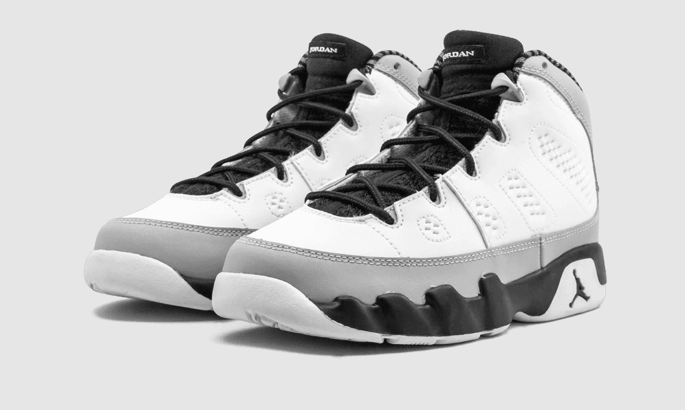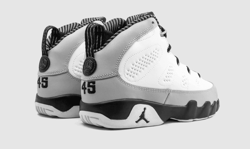 Модель Air Jordan 9 Retro Barons ознаменовывает недолгое пребывание Майкла Джордана в бейсболе низшей лиги с Birmingham Barons. Цветовая гамма белого, черного и фирменного цвета Wolf Grey включает в себя тонкую полоску на воротнике пятки с светоотражающей петлей 3M, а на пятке нанесен игровой номер № 45 бейсбольной майки Jordan.- Цвет: White/Black-Wolf Grey