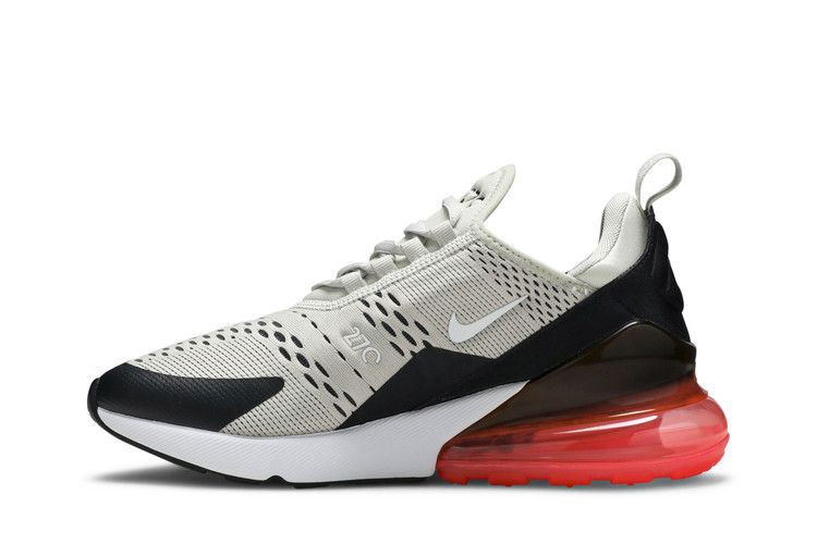В этом школьном издании кроссовок Air Max 270 амортизирующий элемент стал немного меньше. Тем не менее, они по-прежнему имеют сетчатую конструкцию в стиле ботильонов. Цветовая комбинация Light Bone/Hot Punch дополнена голубыми деталями на стельке и белыми элементами на логотипе Swoosh, межподошве и Air Max. Полупрозрачный блок Air переходит в коричневый оттенок на заднике.