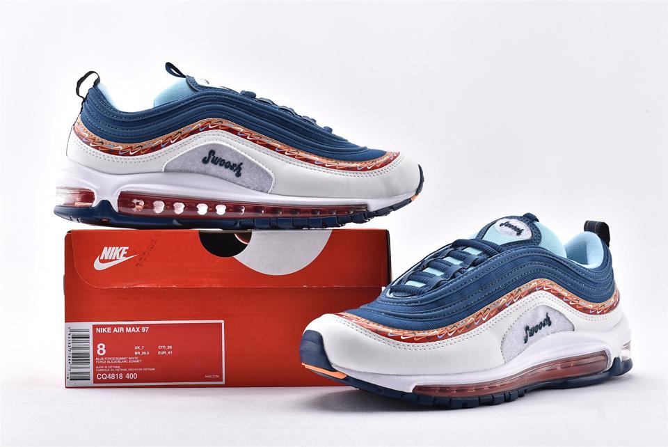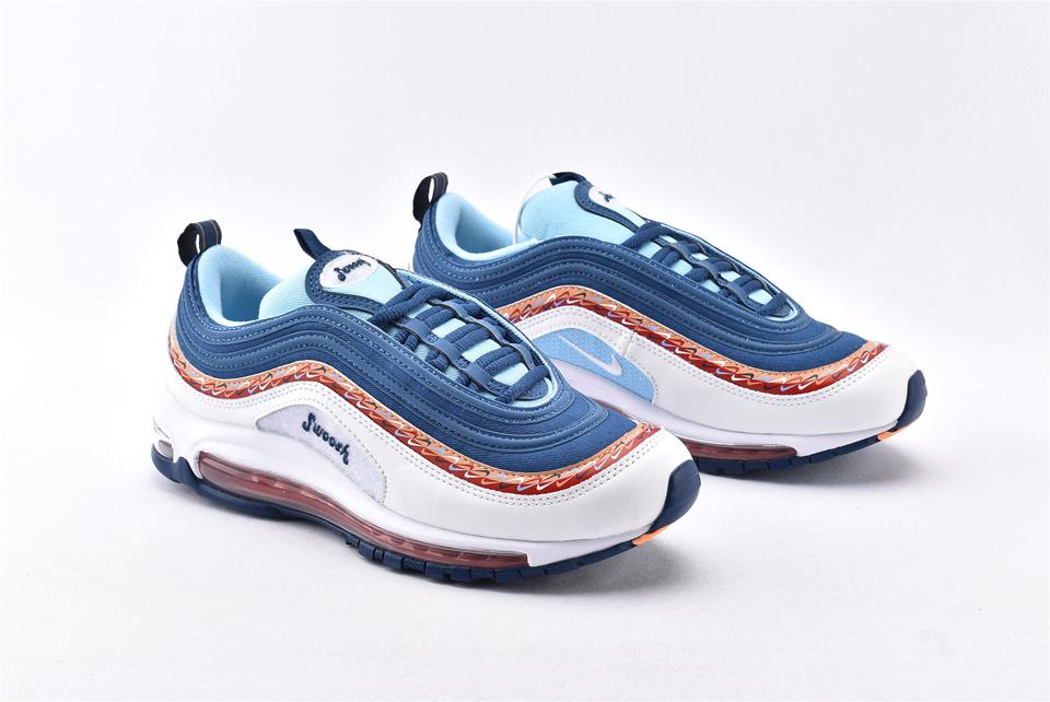 Подростковая модель Air Max 97 GS Swoosh Chain выпущена в августе 2019 года и имеет белый, синий и оранжевый цвета. Модель является частью коллекции «Swoosh Chain», который отдает дань уважения культовой Nike Swoosh. Так же она вдохновлена 1970-ми годами, когда дебютировал символ бренда.  В верхней части стопы можно увидеть слово «Swoosh» и два ряда стильных наклеек.