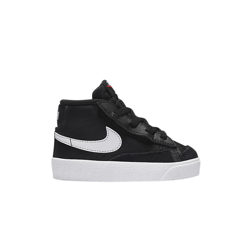 Созданные для малышей, Nike Blazer Mid '77 TD 'Black Suede' представляют собой простую двухцветную вариацию ретро-кроссовок. Преимущественно черный верх, выполненный из тонального сочетания кожи и замши, оснащен эластичными шнурками без завязок и скрытой застежкой-крючком, которая позволяет легко надевать и снимать кроссовки. Белая ретро-стелька Swoosh сочетается с белой подошвой, которая поддерживается резиновой подошвой в виде елочки.