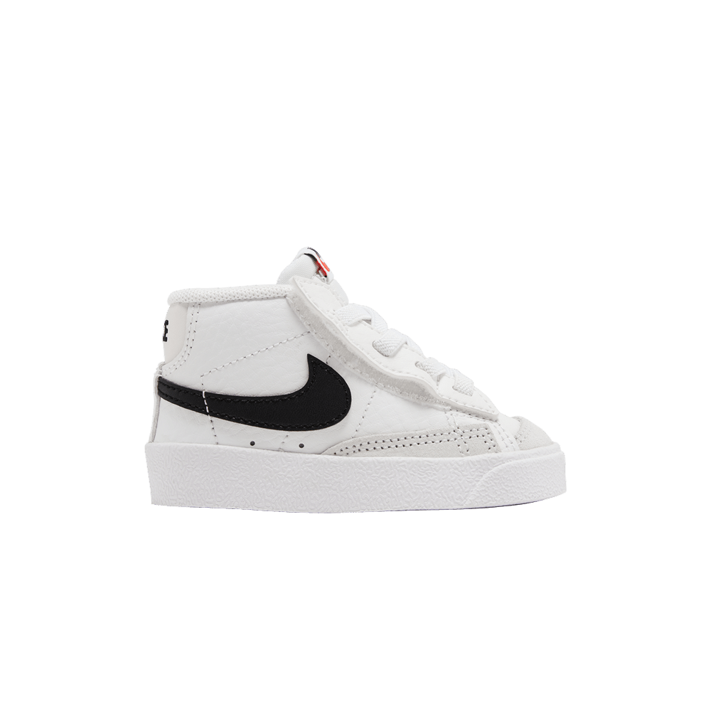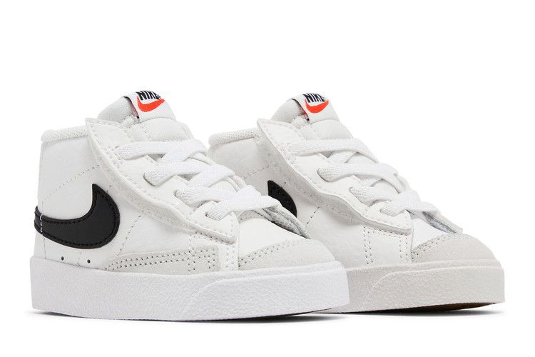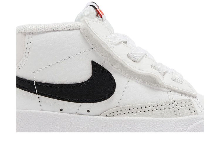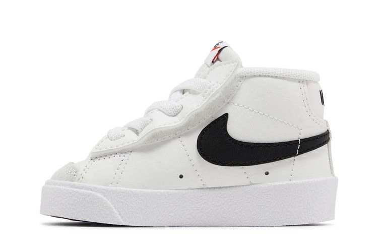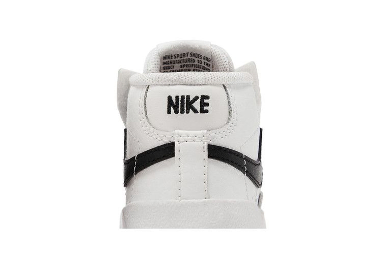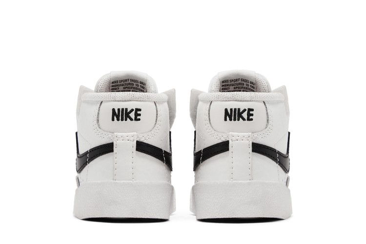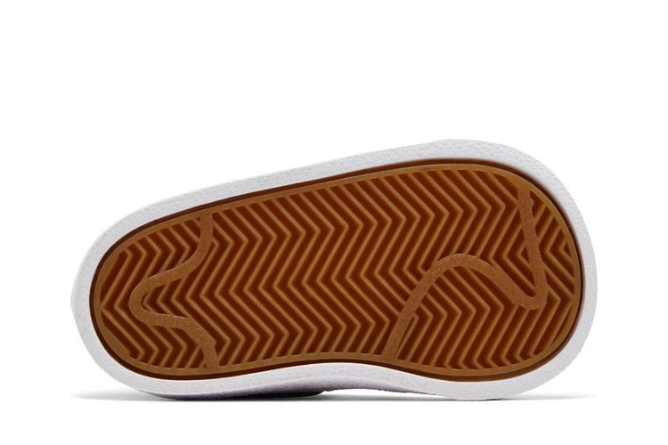 Модель Nike Blazer Mid '77 TD 'White Black', созданная для малышей, представляет собой простую двухцветную расцветку винтажного силуэта. Верх кроссовок из белой кожи скреплен эластичными шнурками без завязок и скрытой застежкой-крючком под каждым глазком, что позволяет легко надевать и снимать обувь. Белая промежуточная подошва уступает место резиновой подошве "елочка", обеспечивающей надежное сцепление с поверхностью для маленьких ножек.